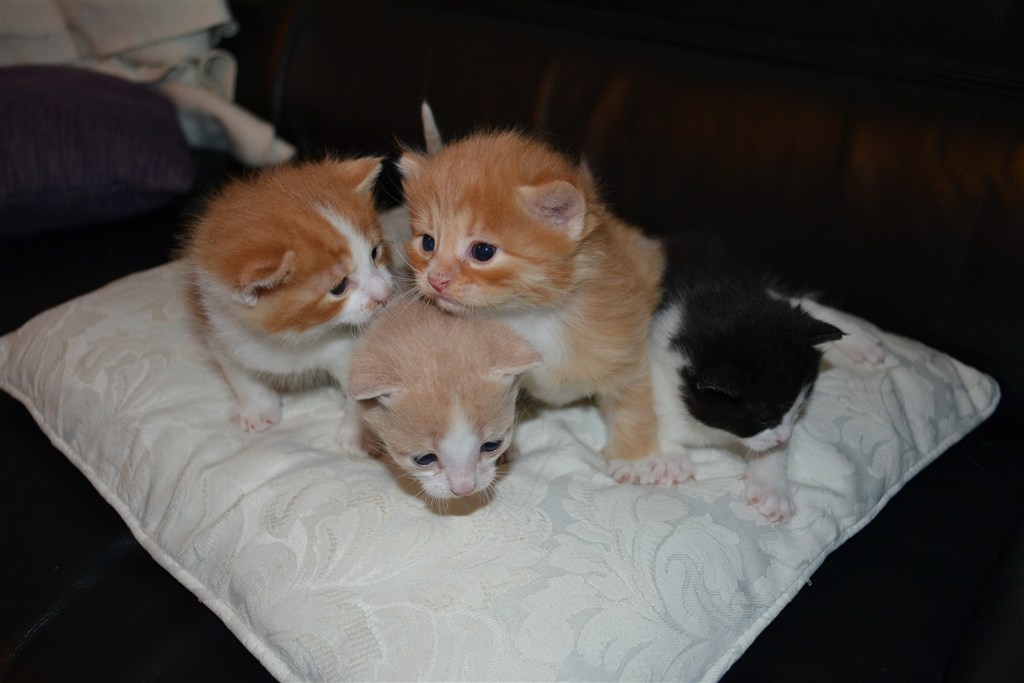 Vores fantastiske mislinger blev 4 uger igår, og jeg ved at det nu er ved at være tid hvor jeg skal lære dem at gå i kattebakke og spise fast føde..