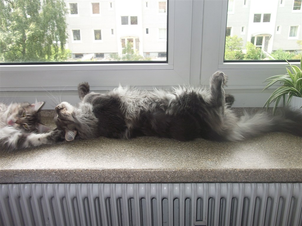 Vi er jo flyttet i rækkehus for snart 2 år siden, så SImba træner den slappe mave udenfor, og jagter fugle og andre katte, og SKRIGER af tilfredshed når vi lukker ham ind om morgenen.. SUUUUK... tie stille kat