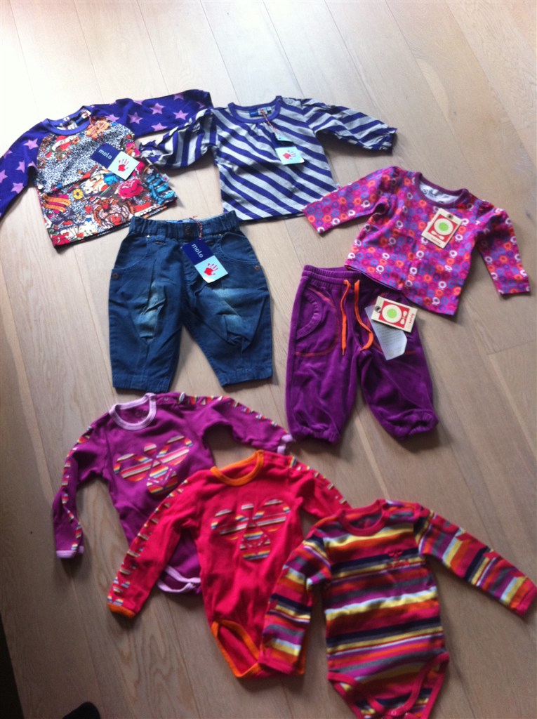 MissTas skriver: Ja, nu er min "lille" pige jo lige hoppet i en str. 68, knap 5 mrd gammel og er derfor begyndt at købe ind i 74 og er SÅ GLAD for mine nye køb..Mangler dog stadig at modtage bodyen og huen der dertil matcher Har desværre en svaghed for tøj til hende. og så er der da lige to nye billeder af min lille guldklump