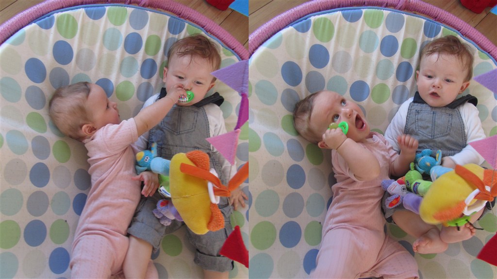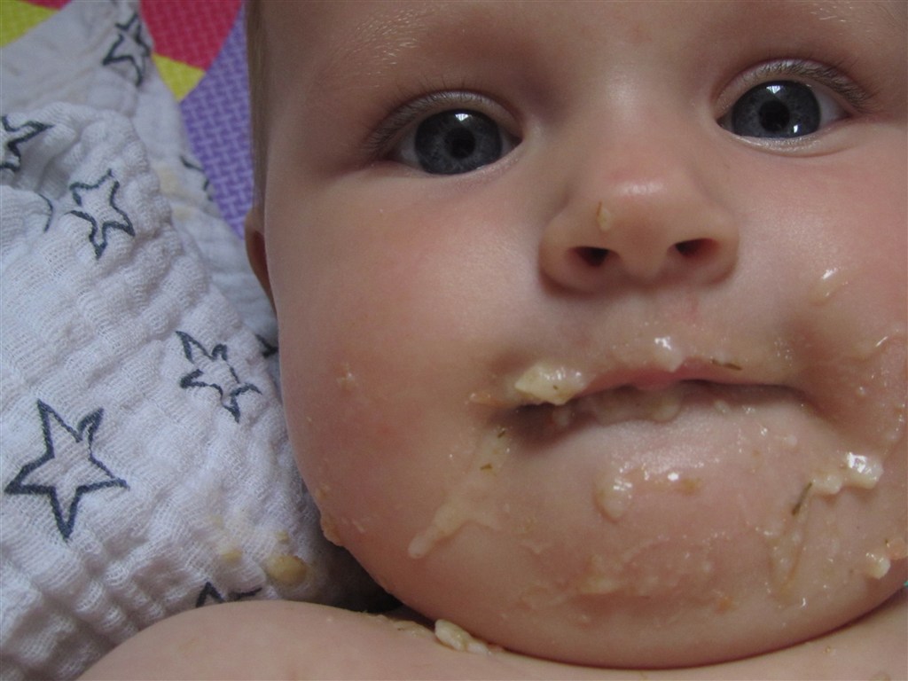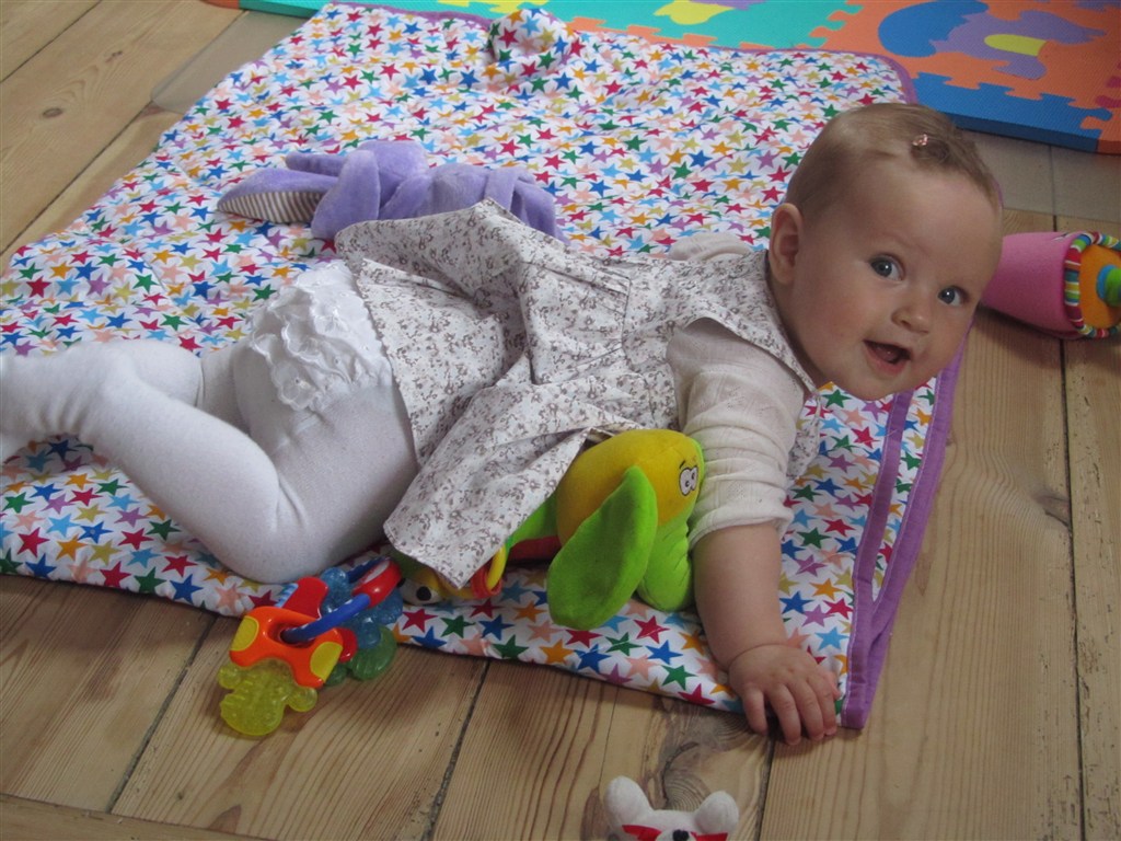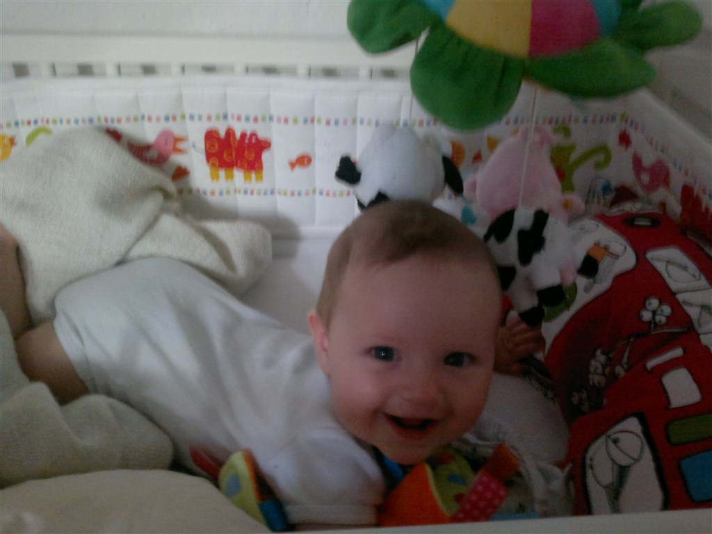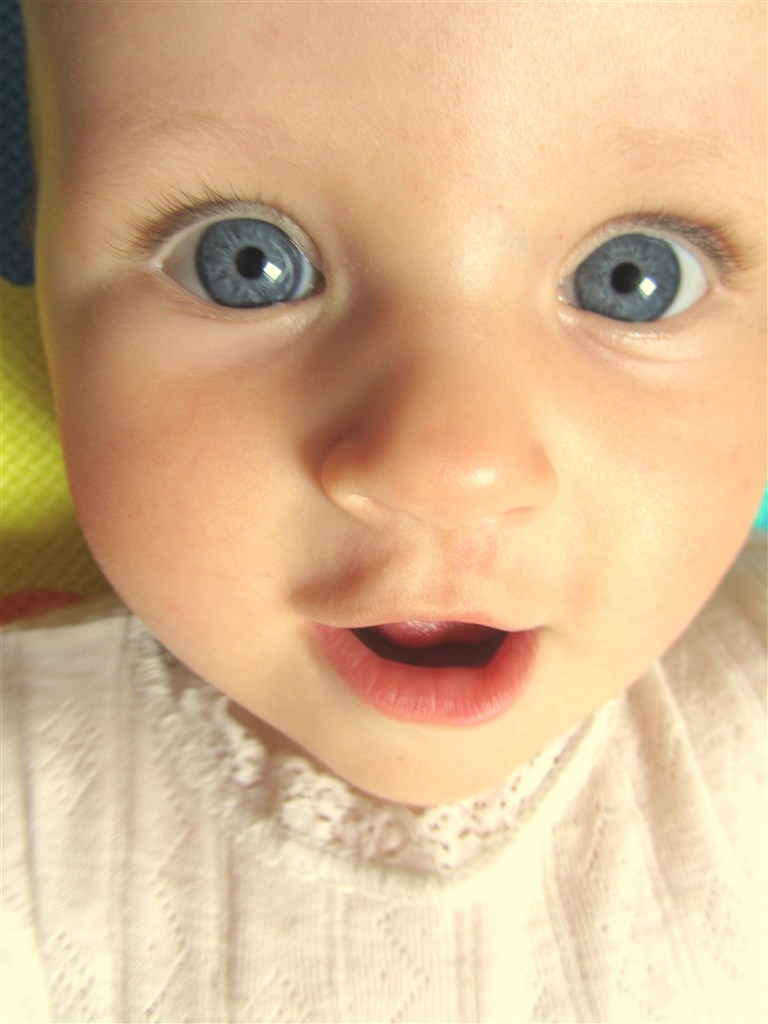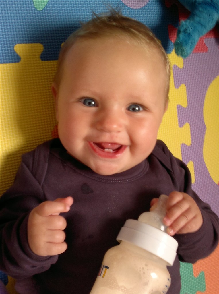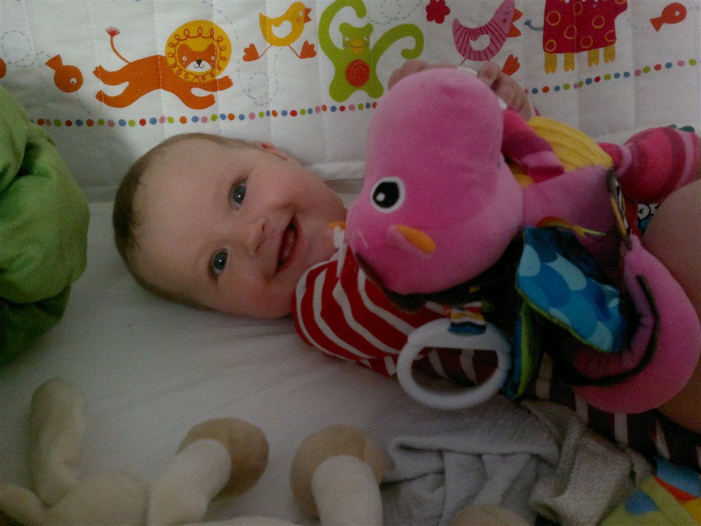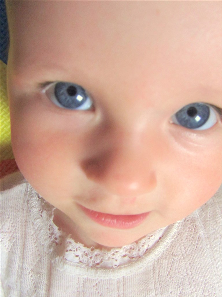 Hun griner og snakker dagen lang, elsker grød, elsker at vække mig så jeg kan trille hende om på ryggen når hun selv er trillet om på maven - og elsker at stjæle andres sutter