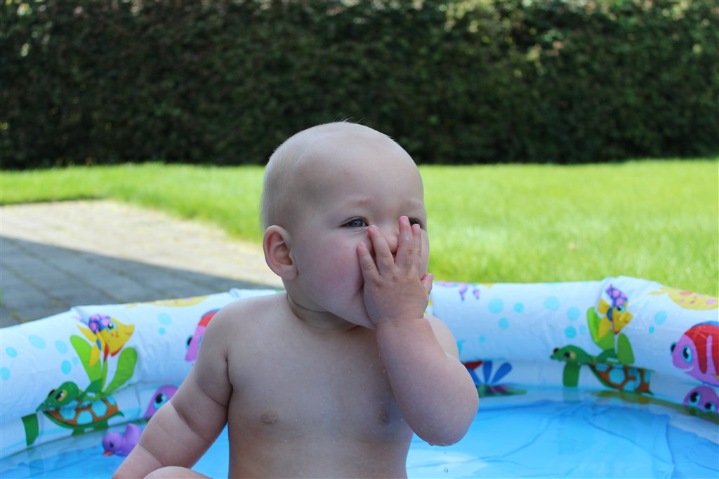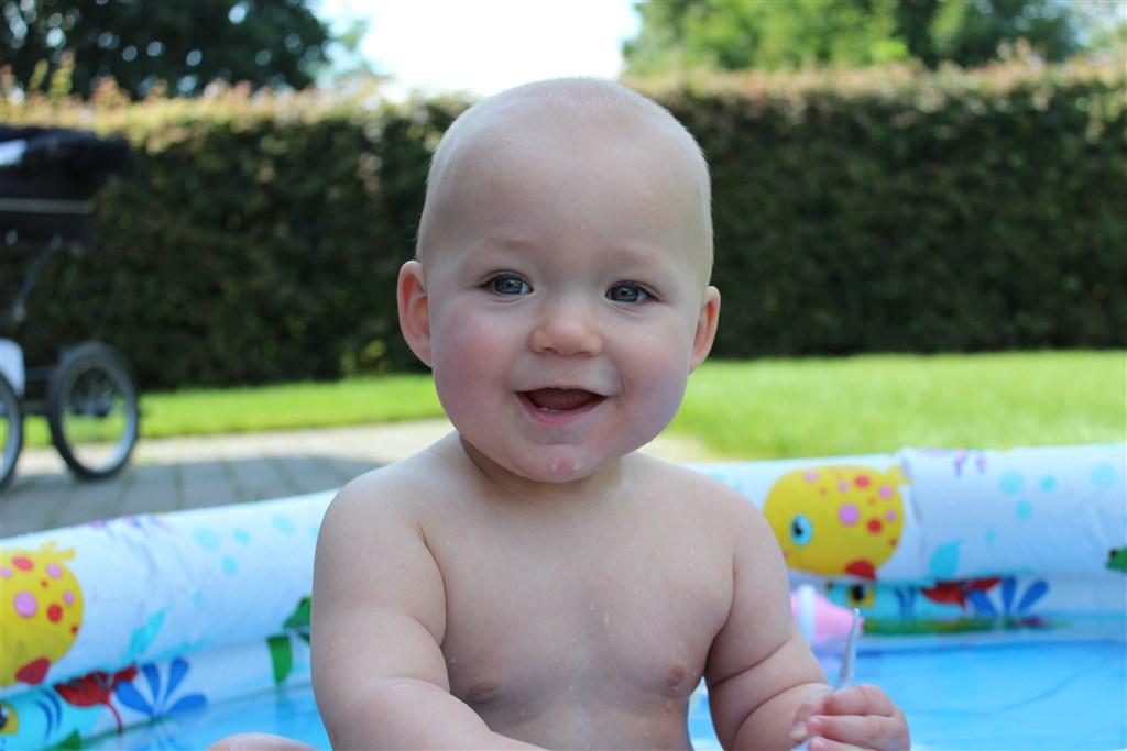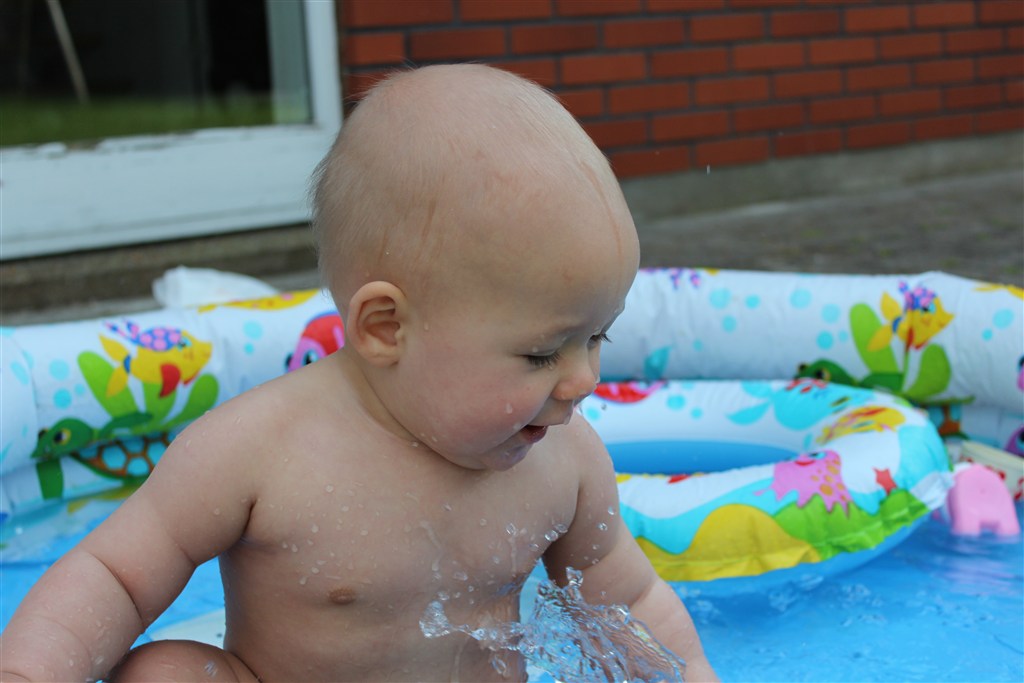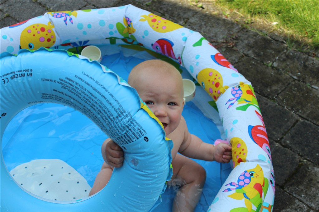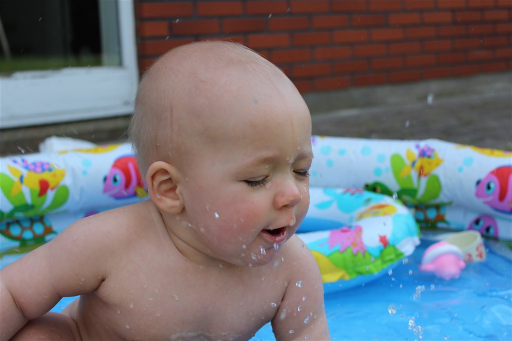 I onsdags, hvor der var rigtig varmt, var Freja en tur i badebassin for 1. gang. Det rå-hyggede hun sig bare med.