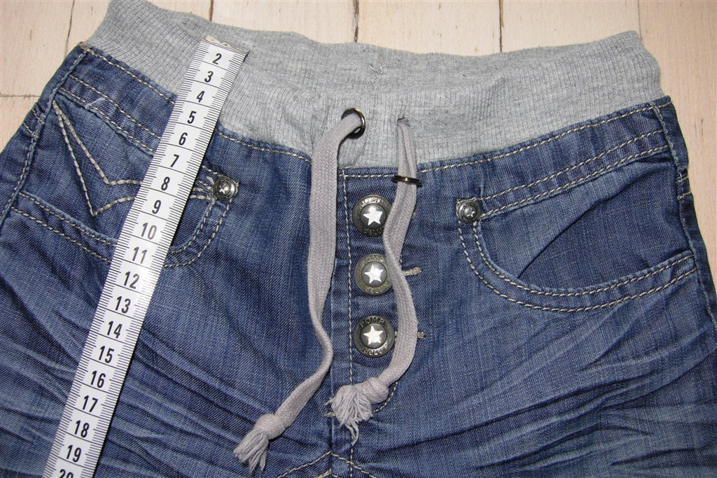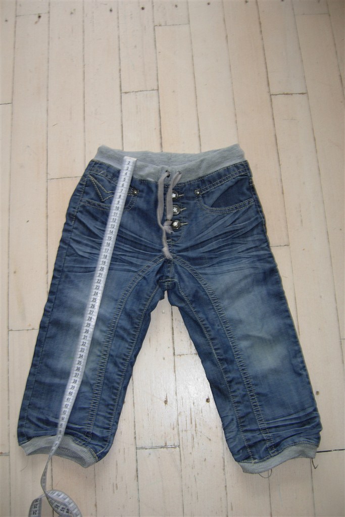 Billede 9: PompdeLux str 98 med ribkant og bånd i livet (typisk man kan ikke se målebåndet, men de måler 49 cm fra livet til buksebenets underkant)