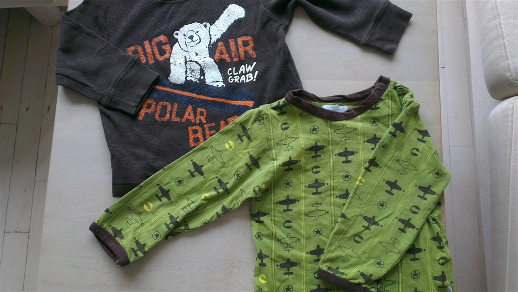 Billede 16: Osh Kost langærmet t-shirt med isbjørn, str. 2 år, MinyMo langærmet, grøn med flyvemaskiner, str. 92 - disse to er brugte, men stadig gode. (Billeder i dette indlæg)