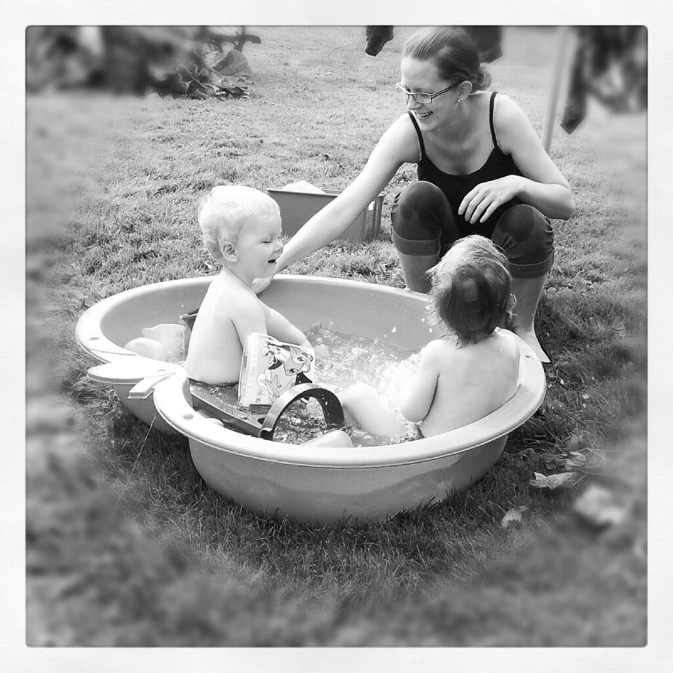 og så lige et sommer billede i regnvejr med ungerne og deres nye gyngestativ