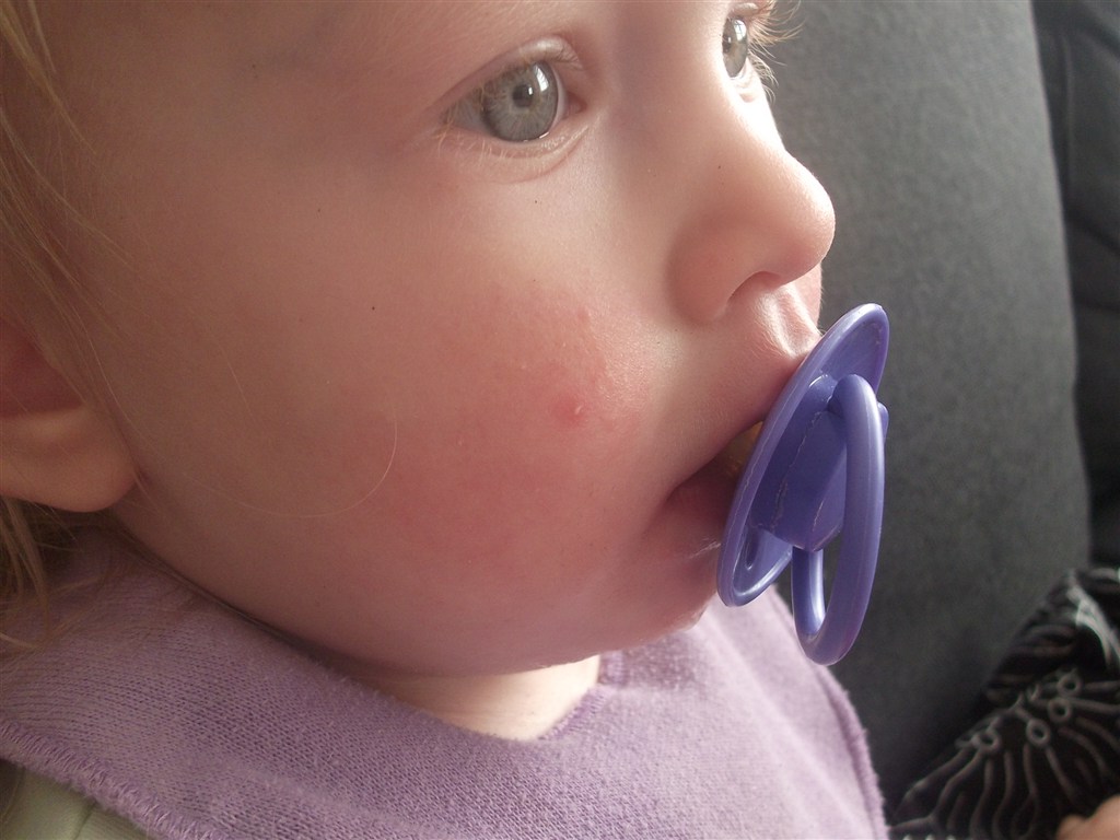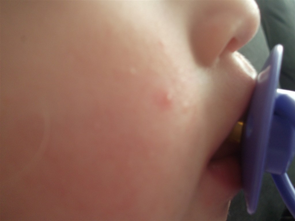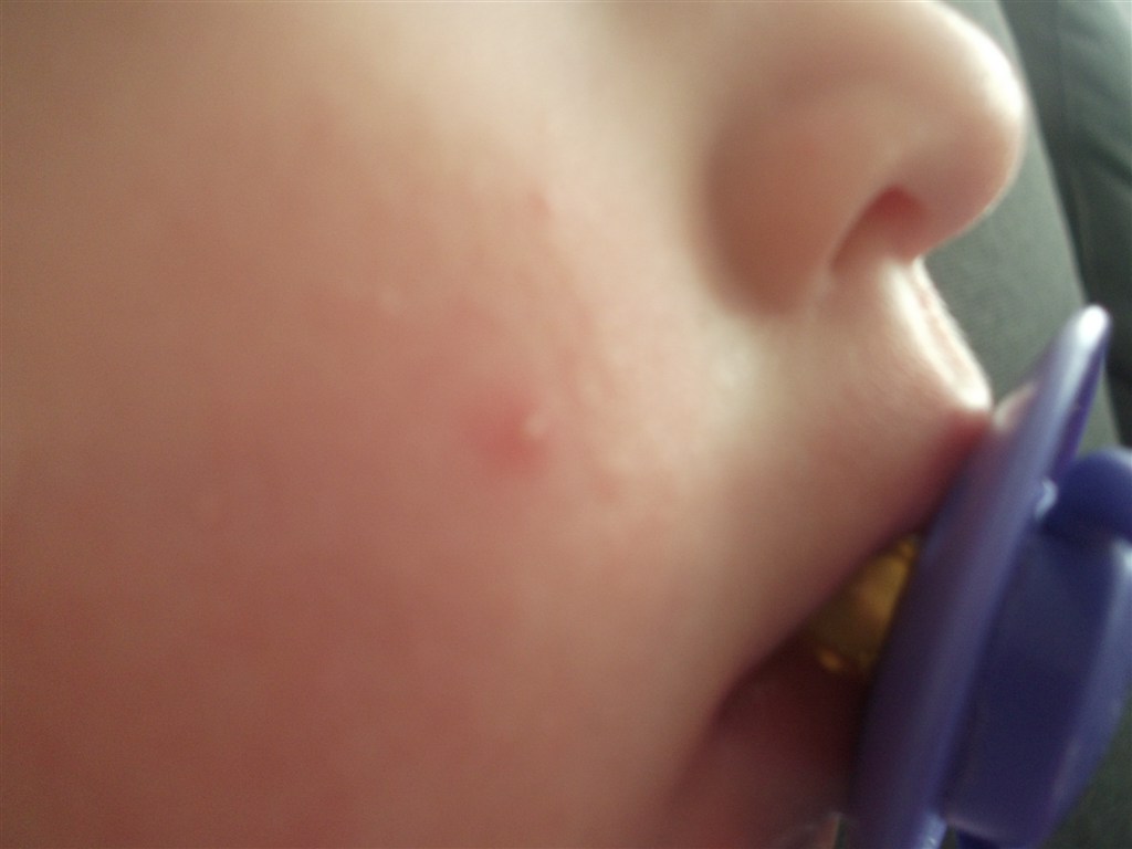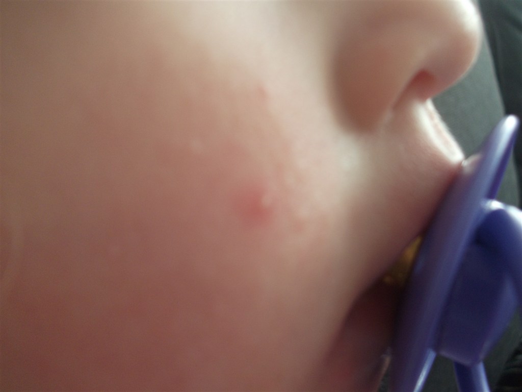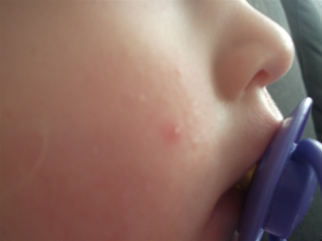 Laura havde/har en (måske to - kan selv kun se en) knop på kinden da jeg hentede hende i dag. De mente det måske var skoldkopper. Fik det råd at ringe til vagtlægen (da egen læge holder ferie - og klokken var over 16.00) - de ville dog ikke se på hende. Men måske I kan se det på billede - tror I det er skoldskopper?