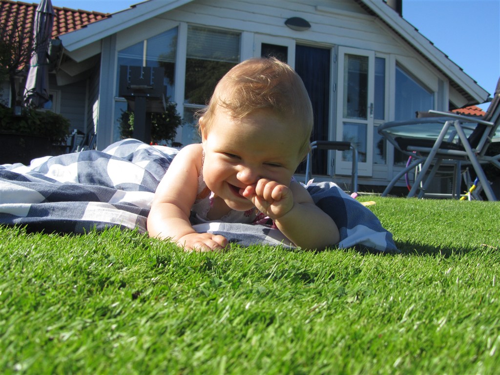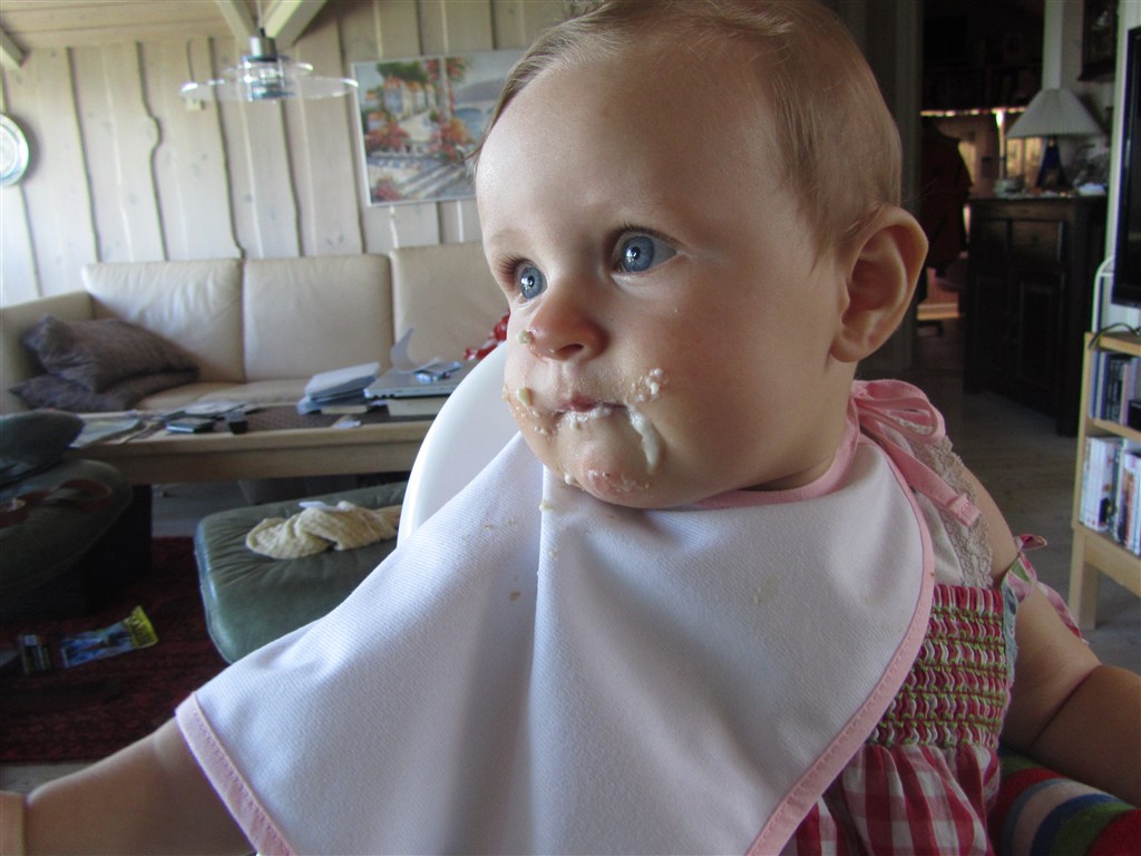 Min lille snuske er nu 8 mdr og knap så lille mere. Tænk at jeg engang har skulle bekymre mig om hendes vægt; nu vejer hun præcis 9 kg og er 74 cm lang