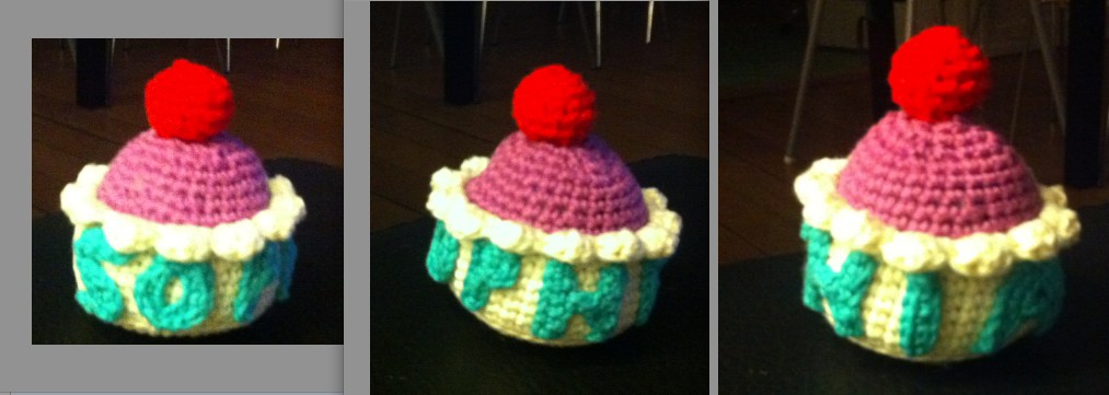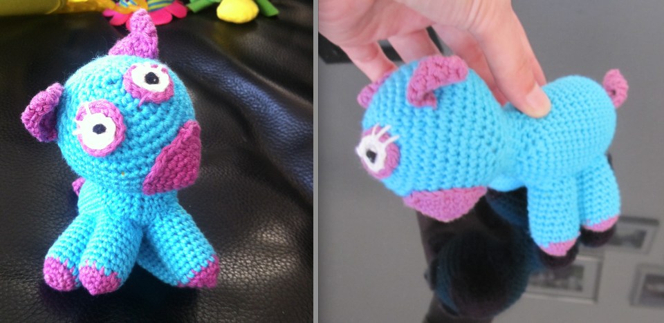 Derefter fortsætter jeg på sutte-tutten ved at lave fm i selve pladen. de første par omg udvider jeg med 1 fm pr omg. Derefter samler jeg 2fm i en fm indtil der ikke er flere masker