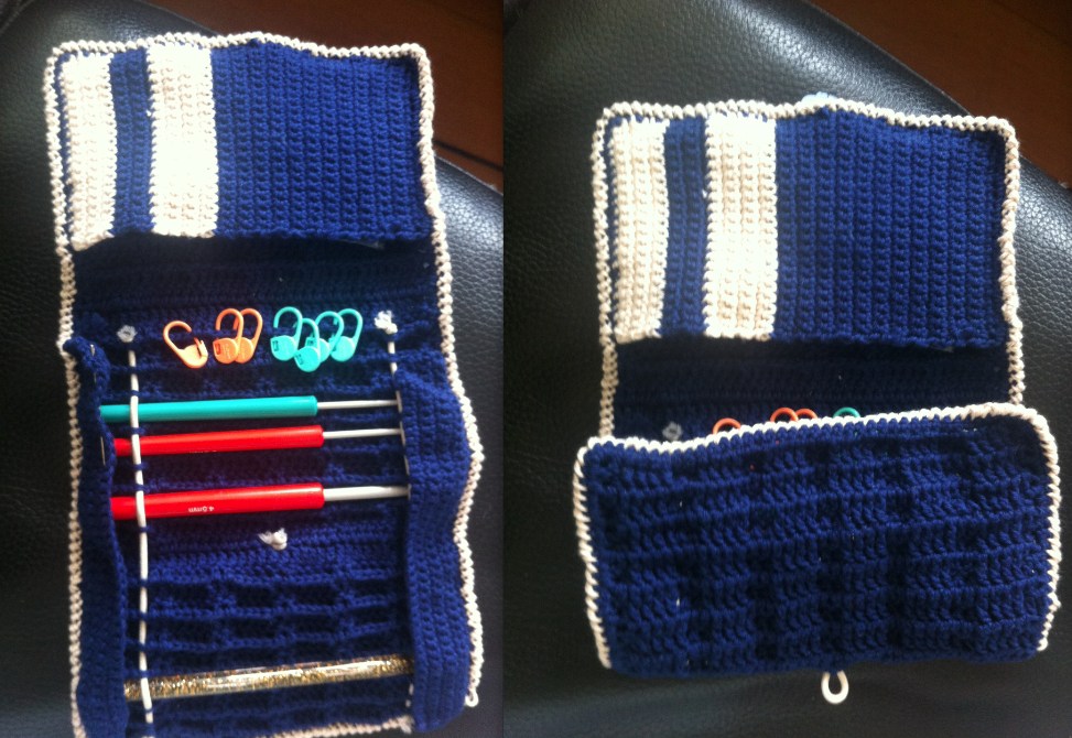 fortsæt i samme farve rundt om ringen - efter en omg så sættes den hvide snor til så der nu er to farver.