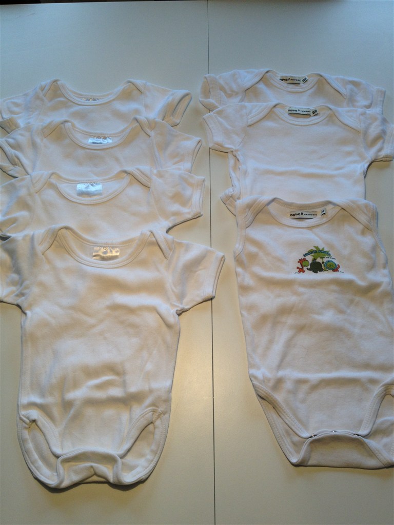 Billede 14: Venstre: H&M. Højre: Nameit. Alle str 56. 5 kr. /stk.