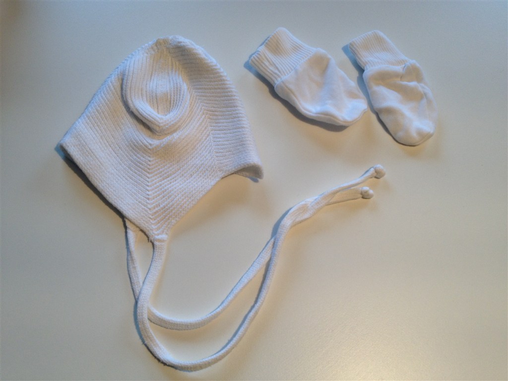 Billede 4: Nameit hue str 50/56. Vanter og futter. 5 kr.