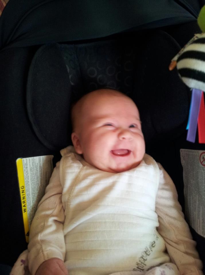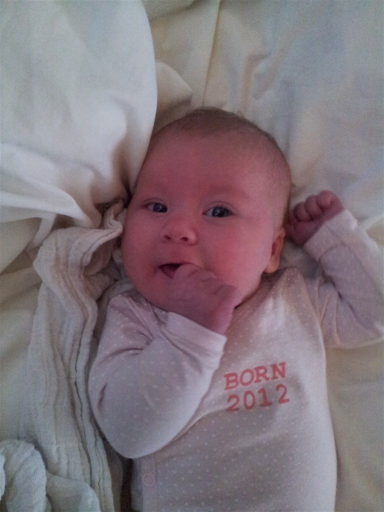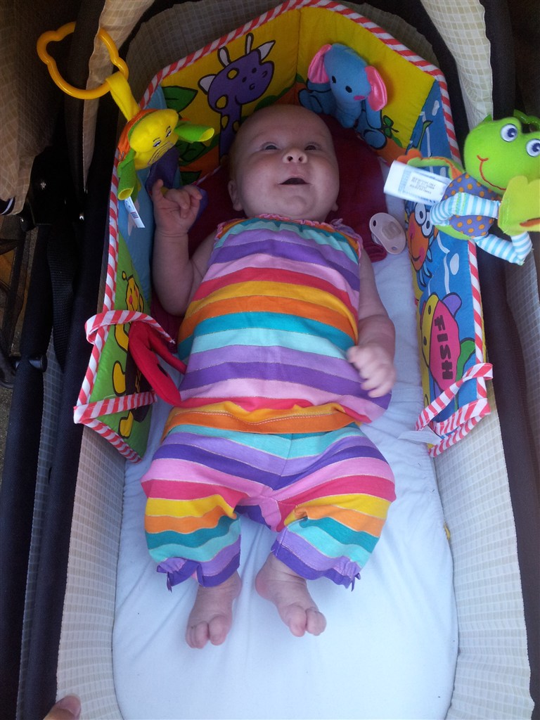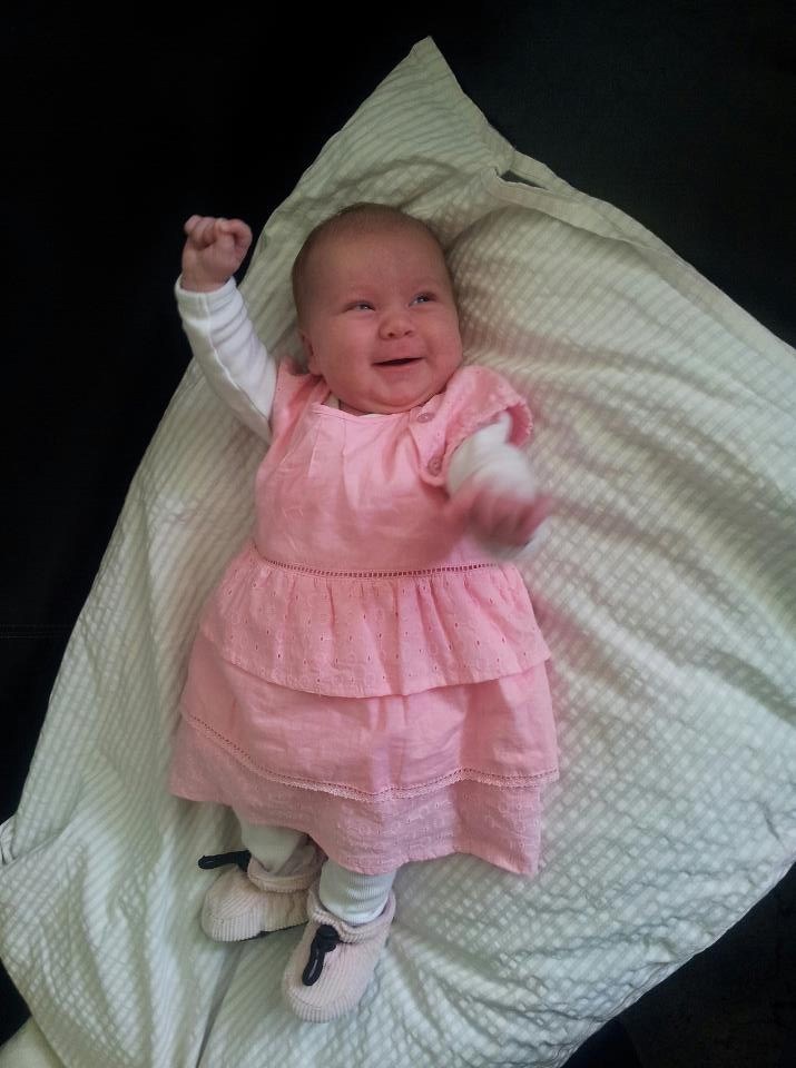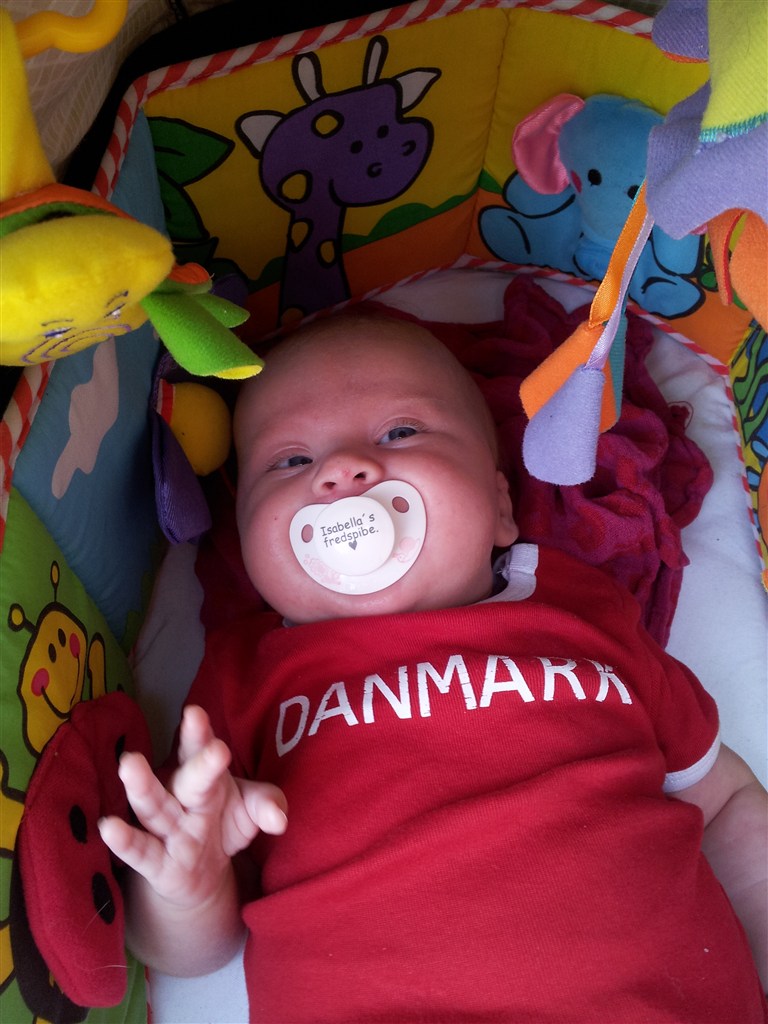 isabella er et dejligt nem baby, synes det hele går meget stærkt med hende hun triller fra ryggen om på maven og fra maven til ryggen.