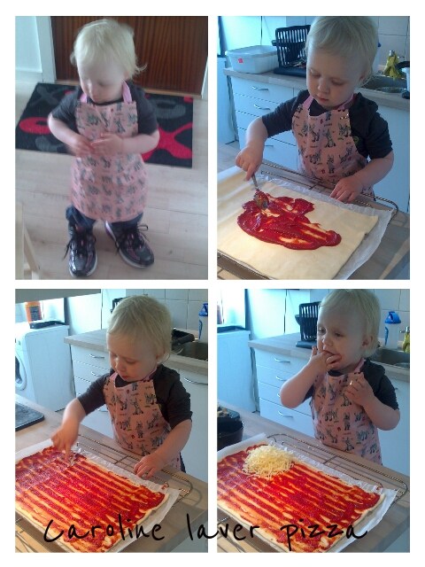 Jo, hun er da en skøn lille pizzabager! Synes det sidste billede er rigtig sødt - maden skal måske lige prøvesmages inden den skal serveres hehe