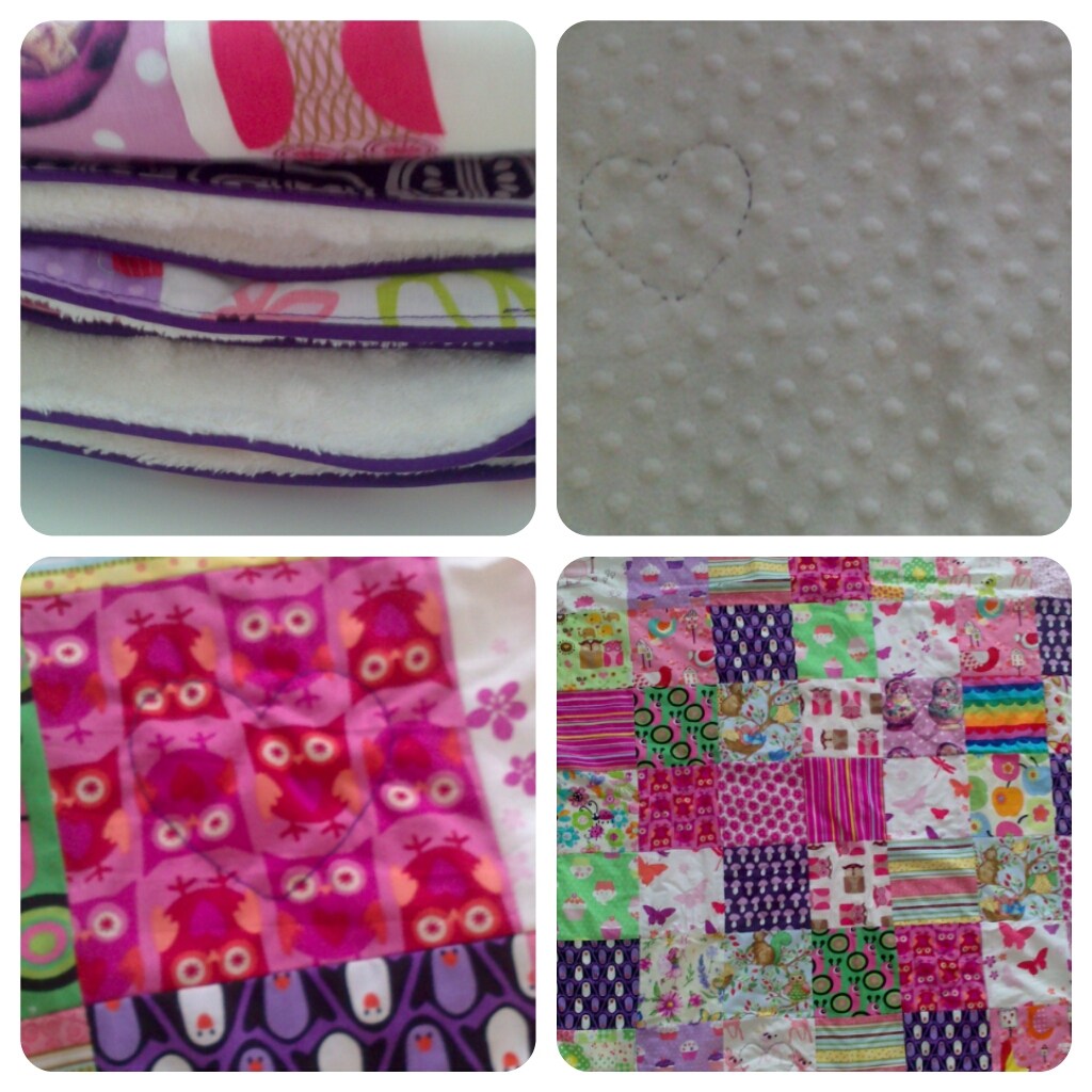 Jeg endte med at lave pipingkanter og fleece på bagsiden .. Og så har jeg syet hjerter rundt omkring på det i hånden (: