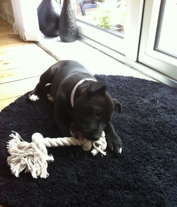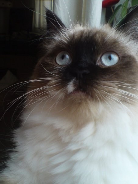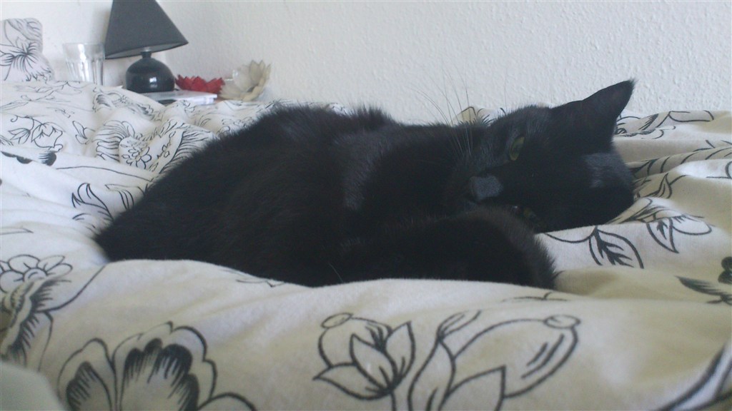 Vi har katten Maja som skulle ha' været aflivet, på en IKKE human måde. Det kunne mit hjerte ikke bære, så selv om vi var blevet enige om at vi ikke skulle have flere dyr, ja så blev vi altså en mere