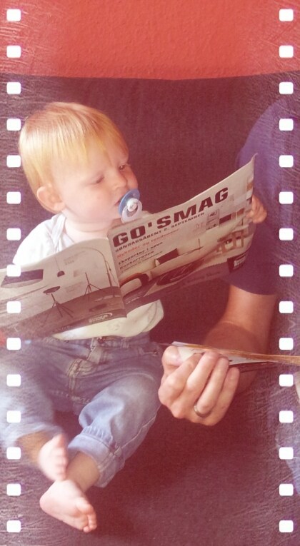 Tauf skriver: Se min lille skat læser avis:-):-)Ham og min mand sad sammen i sofaen og læste, jeg var bare nød til at ta et billede. Ja også så kom det lige i gennem picsArt:-)Men er han ikke sød?