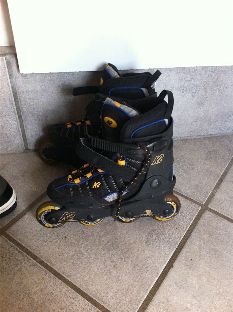 Rulleskøjterne er fra mærket K2 og købte dem for 2 år siden til 1800 kr. De er ikke brugt ret meget, da jeg er ELENDIG til at stå på dem og derfor sælger dem nu.. de har da enkelte ridser og skrammer, men kun alm brugstegn