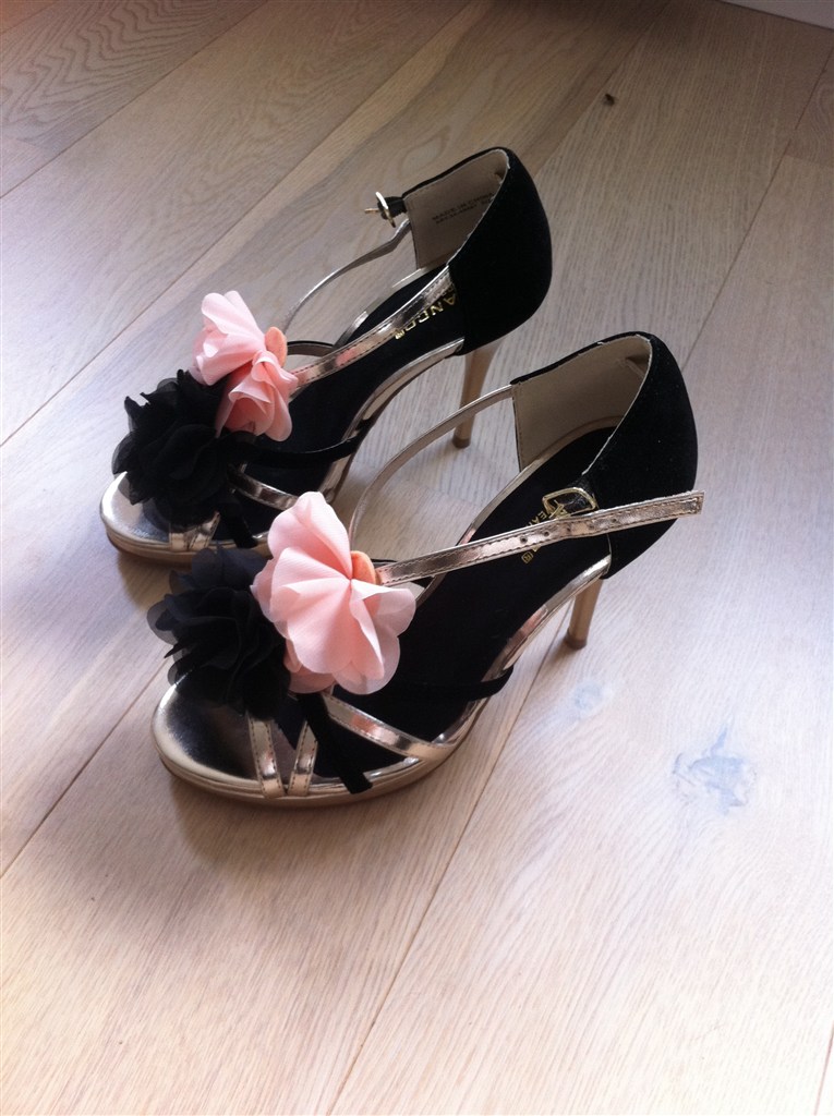 vinterstøvlerne, de grå stiletter, sandalerne og de champagne farvede stiletter er alle str. 37 og de sorte bianco stiletter med blomster er str. 38 (Aldrig brugt)