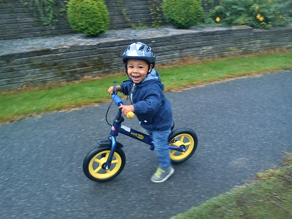 Altså Oskar han blev to her den 20 august .. og han cykler rundt som om han altid havde gjort det ..