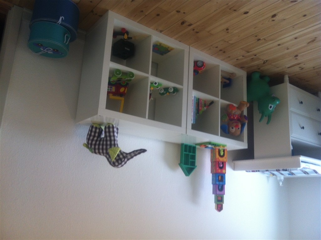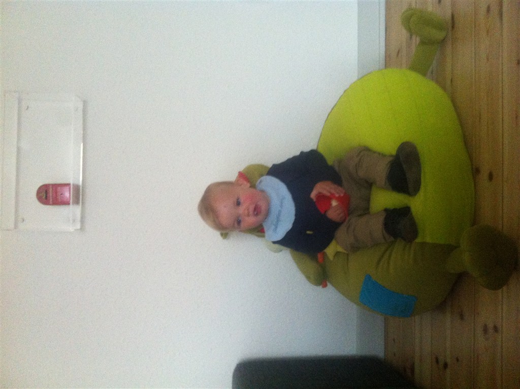 Min yngste har da et legetæppe i patchwork med blomster (blå og grønne) og min ældste elsker at lege med hans dukke Markus og bamsen bjørn som han putter i barnevogn og tremmeseng
