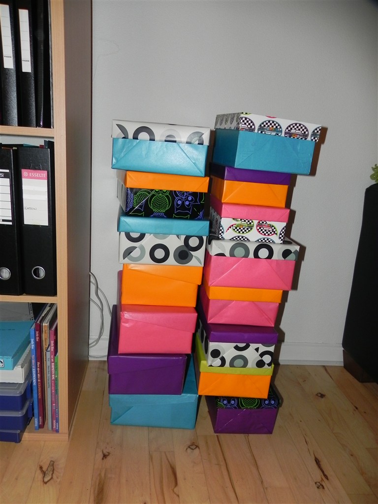 Hehe, det har jeg også gjort. jeg har bare brugt stof, fordi jeg forsøgte med gavepapir først, og det var simpelthen for tyndt, og gik i stykker alt for nemt, også efter limen var tør...