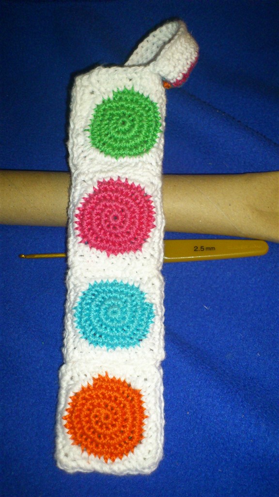 Dette er altså et hæklenåle etui, lavet af små firkanter, med cirkel i midten.