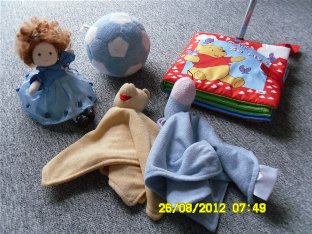 har en gå vogn og noget babylegetøj til salg. sælges billigt da vi ikke har plads til det.har også en amme pude med peterplys,skum puslespil til gulvet med 9 brikker (har desværre fået noge bidemærker)kom med et seriøst bud og vi finder en fælles pris