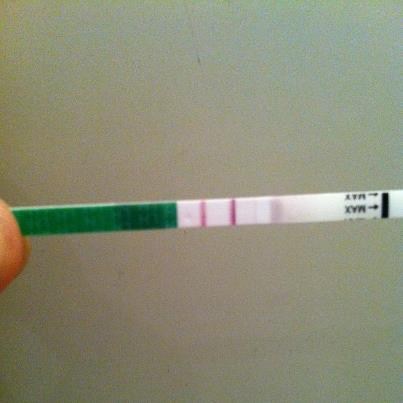 Jeg vil faktisk tro, den er negativ, eftersom den skal være lige så tydelig eller tydeligere end kontrolstregen. Vent, det ER stregen til venstre der er teststregen, ikke? For ellers er den i hvert fald meget positiv.