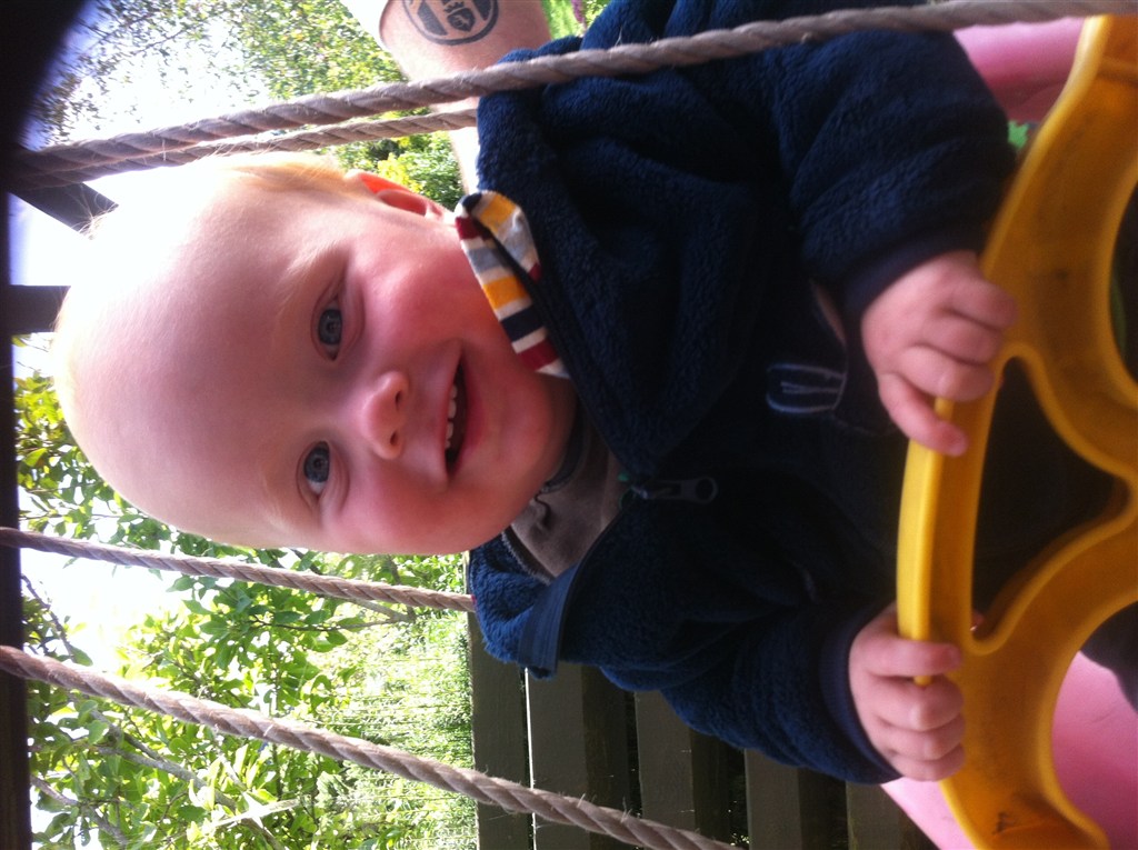 For ca tre uger siden lærte han at gå fuldt ud.. (lidt sent vil nogen mene) .. Han siger en masse ord og prøver at efterligne de ord man siger