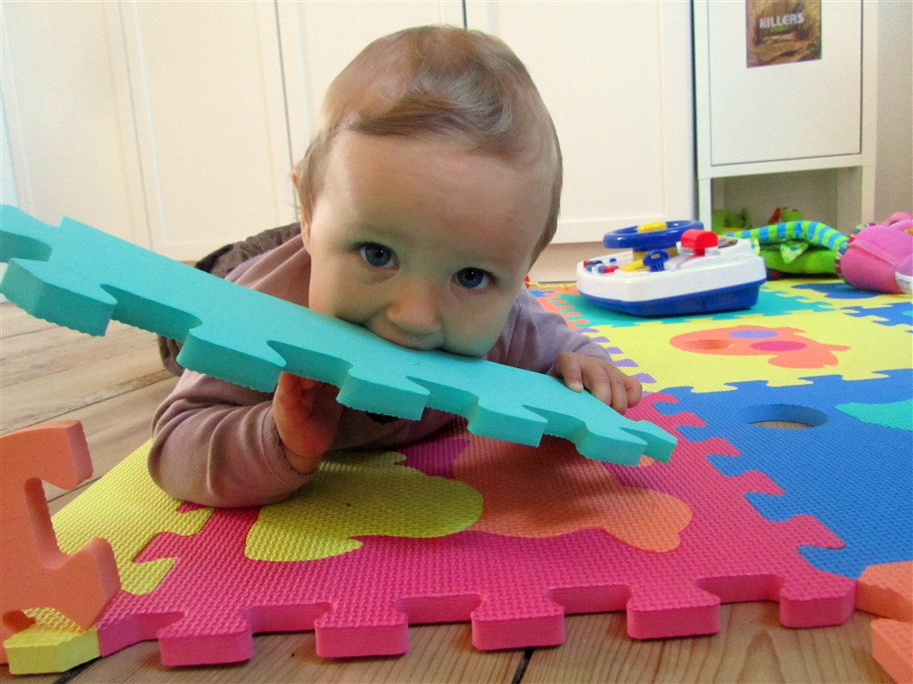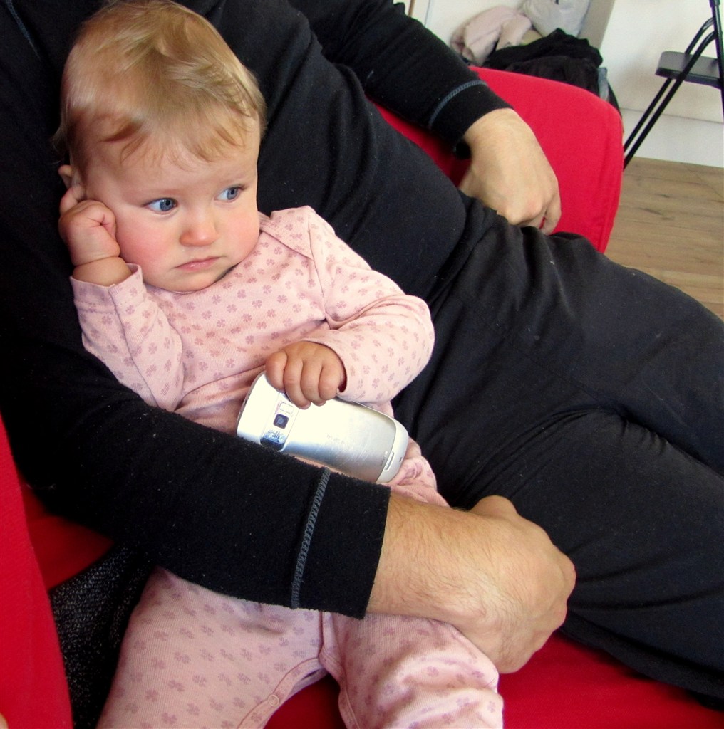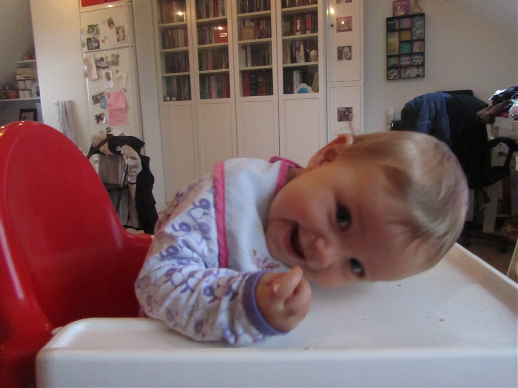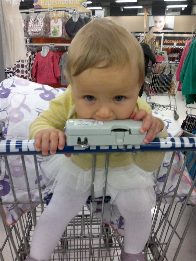 Hun er nysgerrig, og alt skal undersøges. Hun kravler (hurtigt), rejser sig op ad alt og er så småt begyndt at gå langs sofabordet. Så jeg har evigt dårlige nerver
