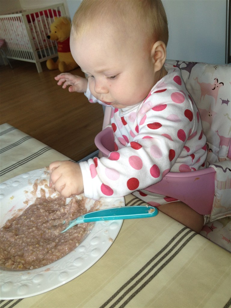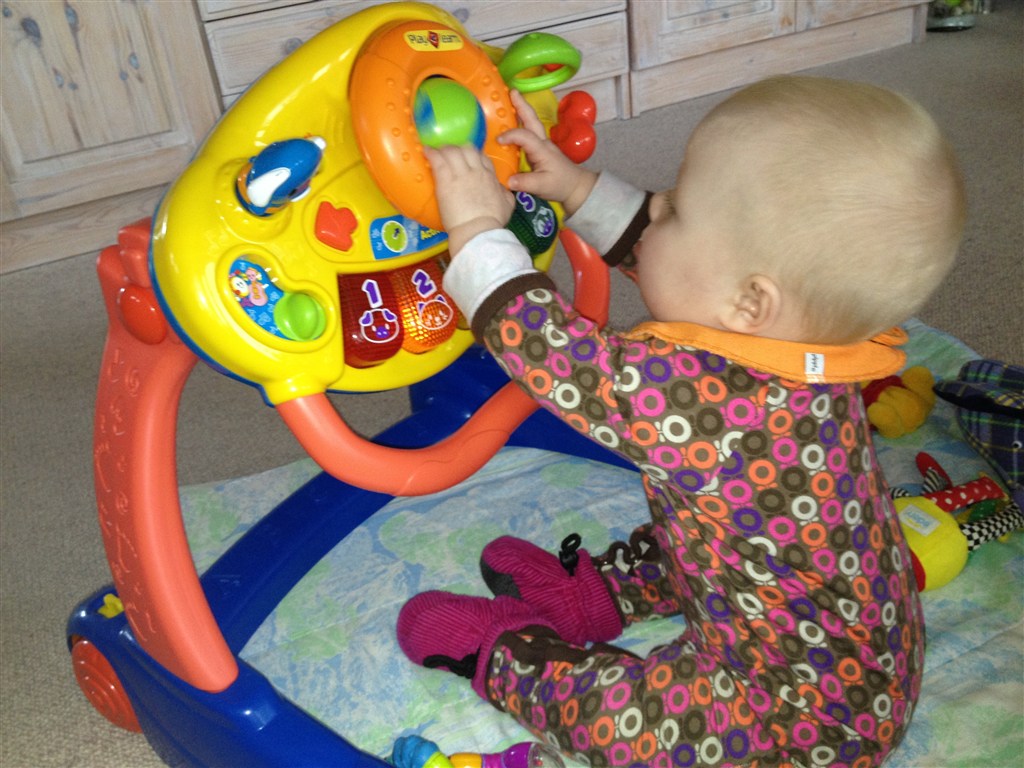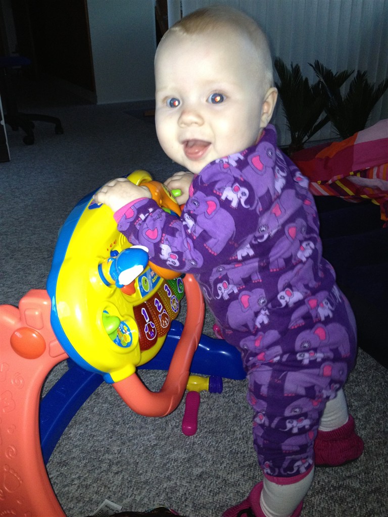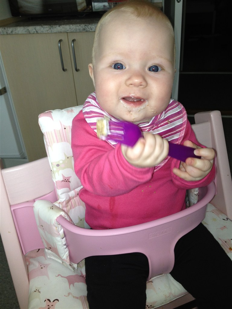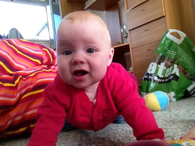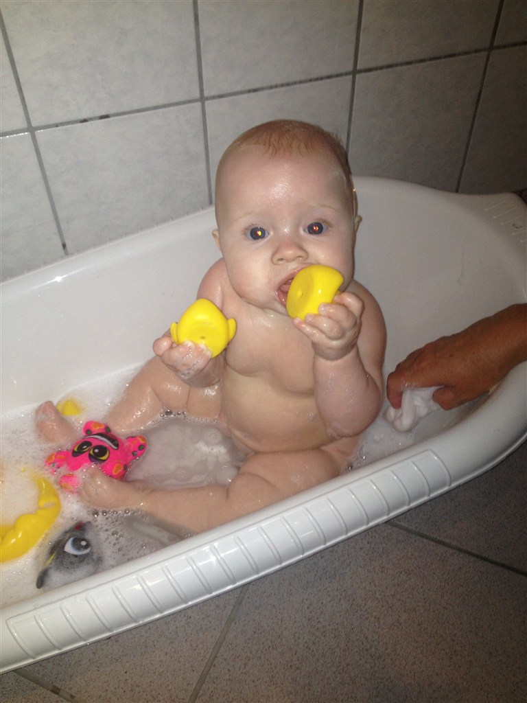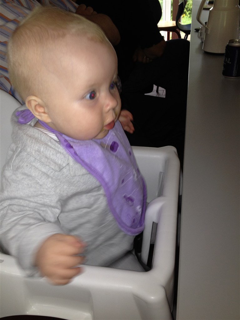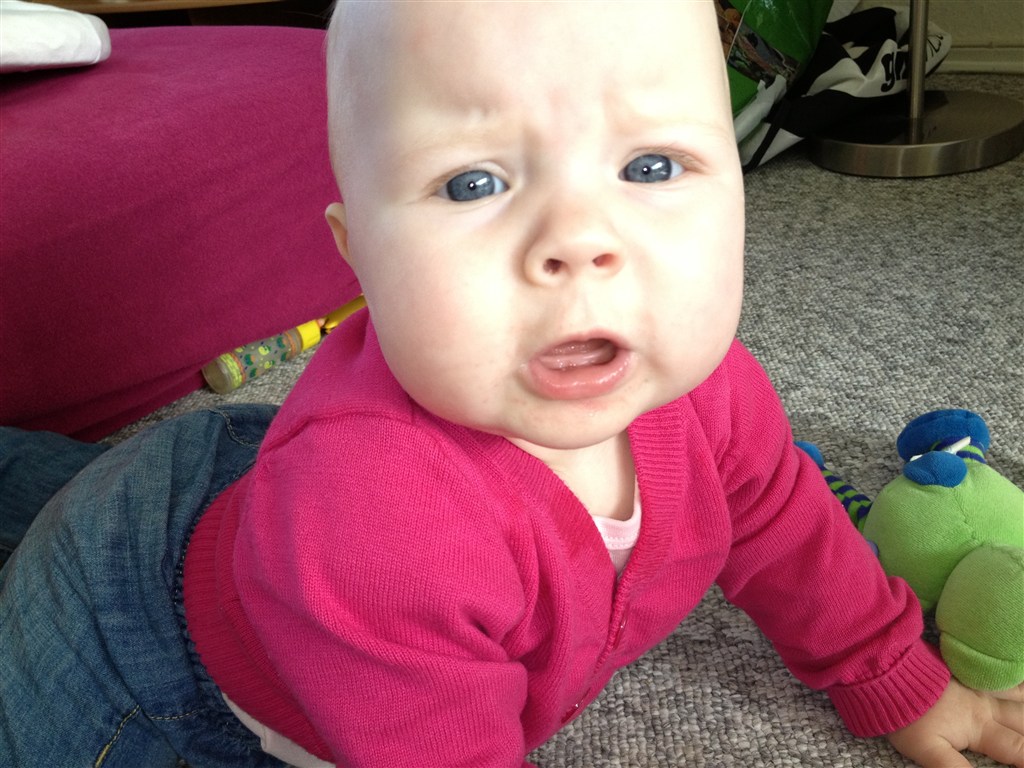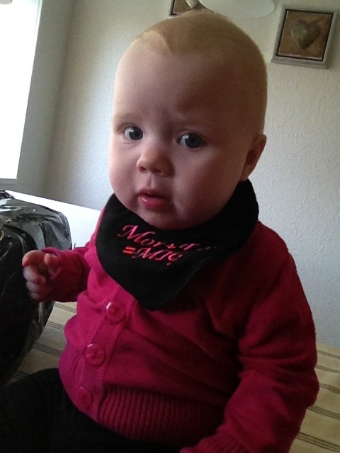 Hun er bare SKØN! Og så nem, så nem. Vi har lige haft en periode med, at hun ikke ville sove, men det har hjulpet en del efter frøkenens første tand har vist sig i undermunden, jubii! Og efter at vi fandt ud af at det altså var astmatisk bronkitis hun hostede sådan af, så nu går det frem af igen!