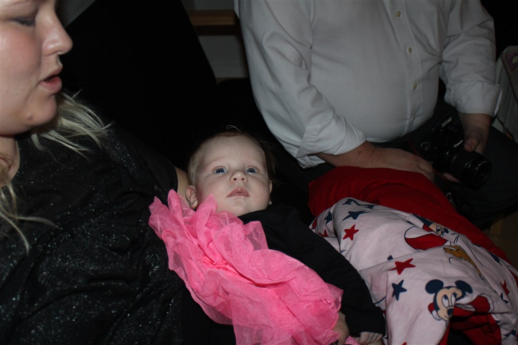 lille elna pigen havde sort boddy sorte strømpebukser, pink tyll skørt og pelsvest på til navngivningen... og hun var så fin