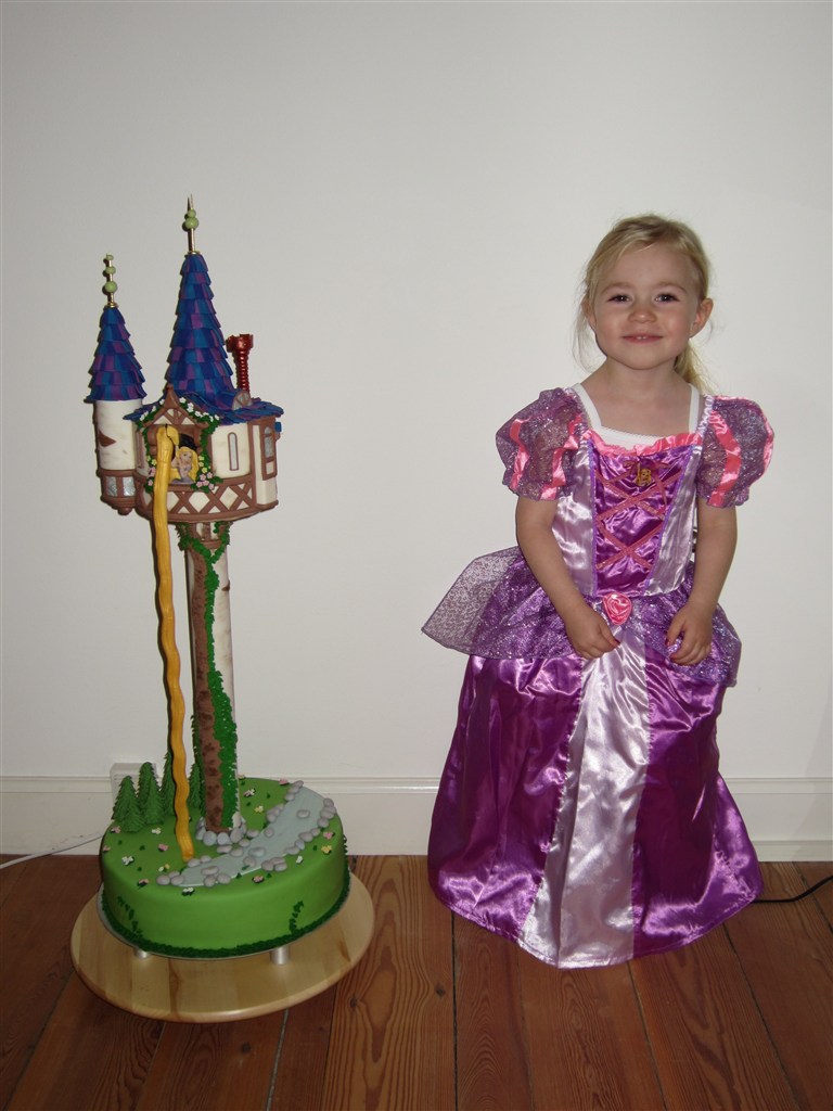 Hun kan næsten alle replikkerne, og fik selvfølgelig lysene hår og Rapunzel kjole i fødselsdagsgave