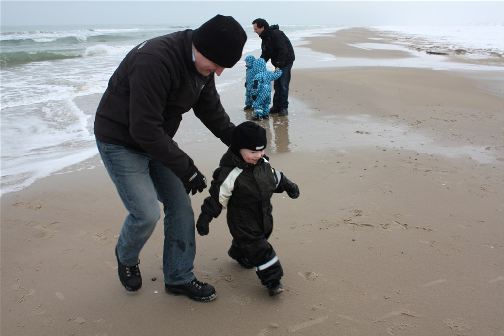 Ja grenen kunne det godt ligne det er nok nok i nordjylland, tversted, lang oppe men ikke helt grenen, men kan godt se det ligner lidt... OG ja hehe de griner heldigvis begge to, tror Alexander var ude på spilopper og ville gå ud i havet og far prøver at fange ham.....