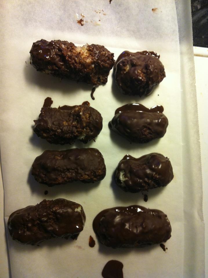 jeg lvede hjemmelavt bounty den anden dag og så har chokolade på idag .. de er måske ikke så pæne men, det er os første gang