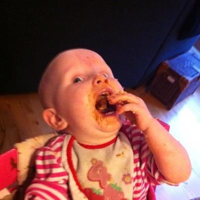 syntes lige i skulle se et sjovt billede af Johanne, hun sidder og spiser frokost og får rugbrød med makrel, og makrel er godt :-)