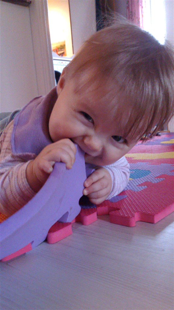 Også er hun bare alt spisende, på trods af at hun ingen tænder har - endnu... Vil hellere sidde og tygge på små kartoffel stykker, end at spise mos. Elsker rugbrøds hapsere med leverpostej, men smøre ost kan bruges.