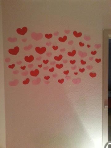 Vi er så småt i gang med at lave værelse til lille pigen og da vi ikke vil bruge alt for mange penge på små ting så kom jeg lige på en idé og så kom der lige 60 hjerter op på den ene væg hehe synes selv det er ret fint
