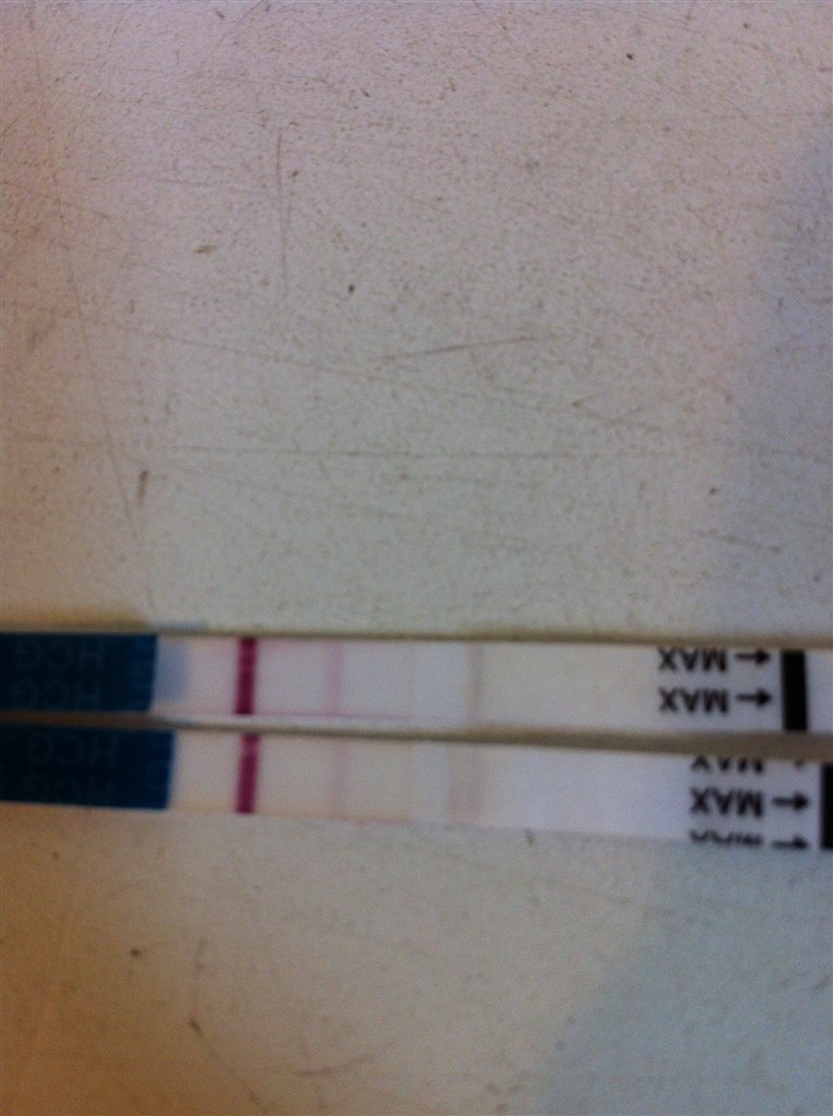 Anonym skriver: Hej piger Jeg er i dag 3+3 og har netop taget disse to test. Er de positive eller er de for svage i farven til at man kan sige de er positive? Mv