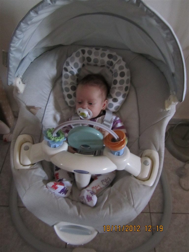 ca. 8.30 Faar sin maelk og derefter sover han ikke. Indtil naeste maaltid saetter jeg ham fx i de ting jeg har sat et billede ind af.. eller vi sidder bare og sludre