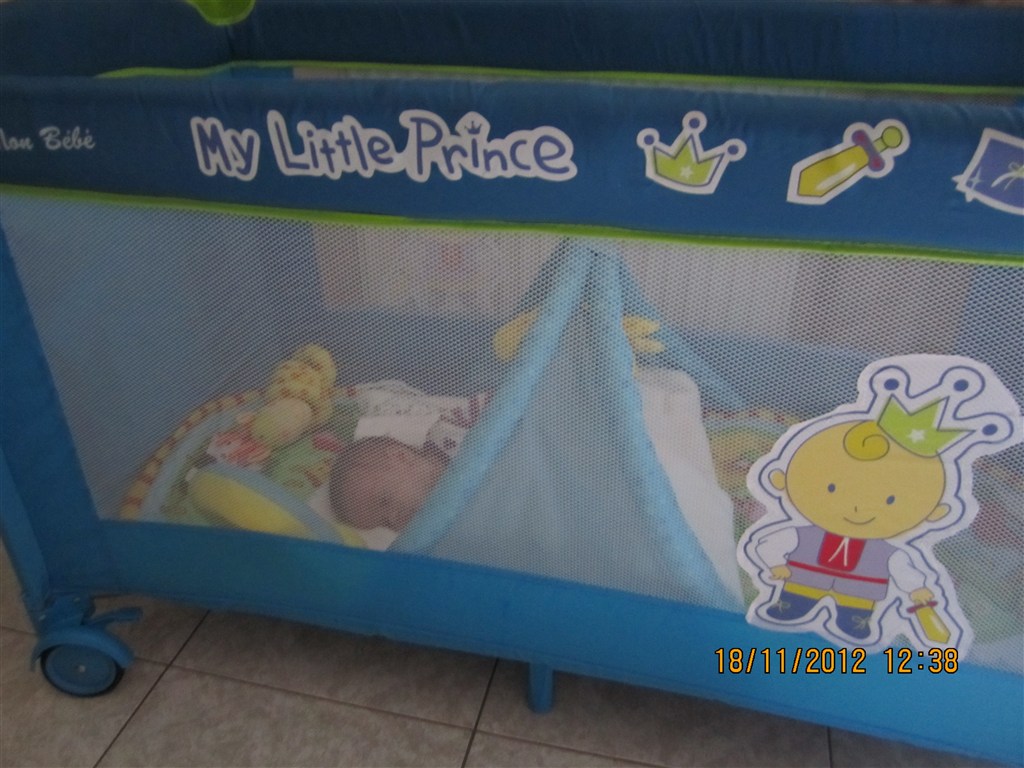 ca. 20.30 Kommer i bad og derefter faar sin maelk. Bliver derefter lagt i sin seng og falder i soevn efter en halv times tid.