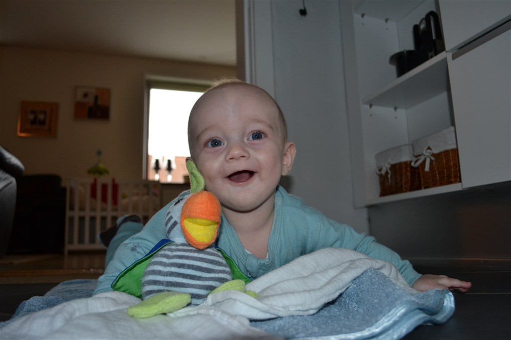 Daniel startede 1. oktober, og han bruger stadig sut når han sover (er også frygtelig glad for den), bruger ble hele tiden, og sover til middag.