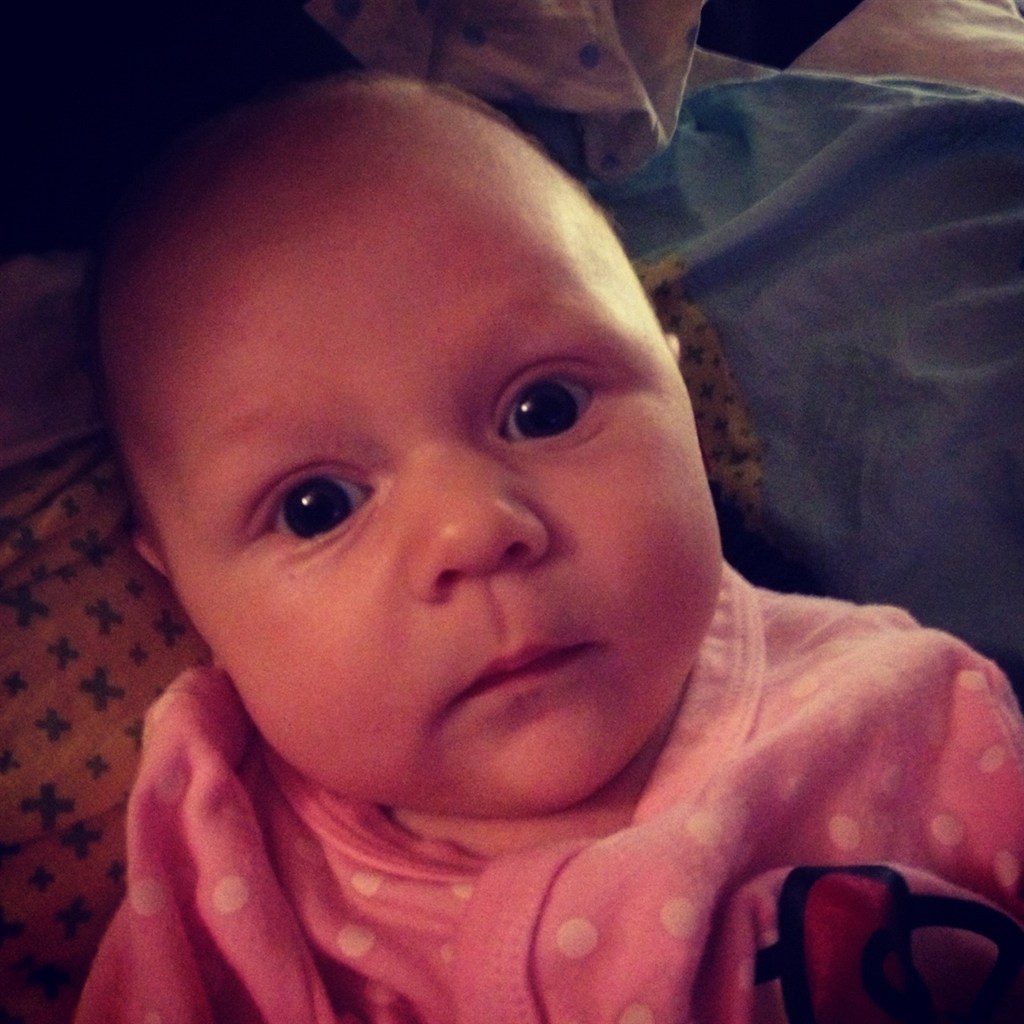 Hun tager på som hun skal, hun trives & hun er så dejlig nem, havde ikke troede det ville være så nemt at være mor, det er jo virkelig en ren fornøjelse... Hvert sekund med hende er guld værd!