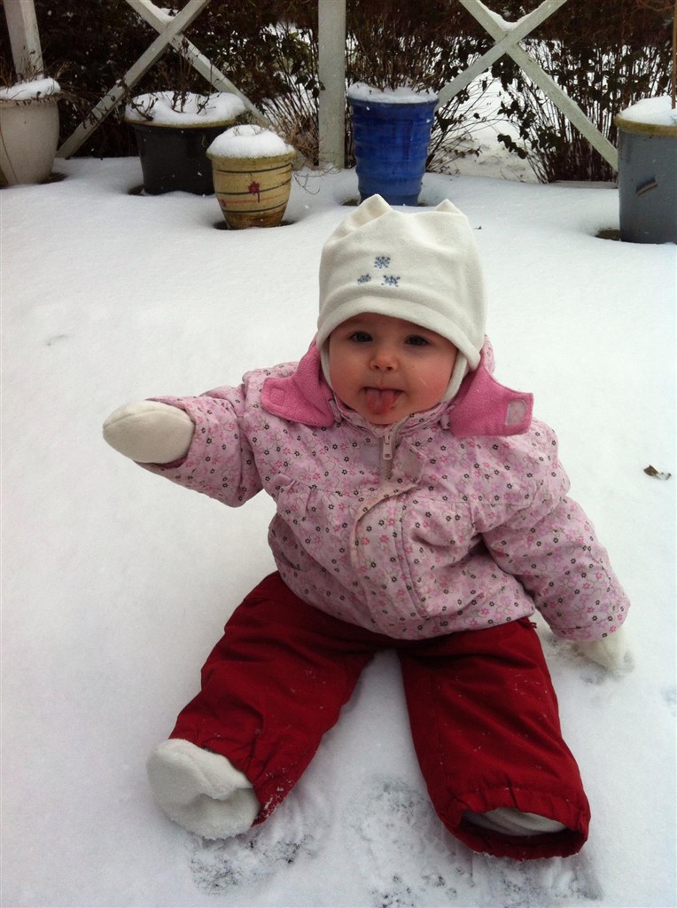 ciepige skriver: Her er Freyja's allerførste møde med sneen, i sidste uge! Det kunne da være vi skulle derud igen i dag, når hun vågner fra sin evige søvn