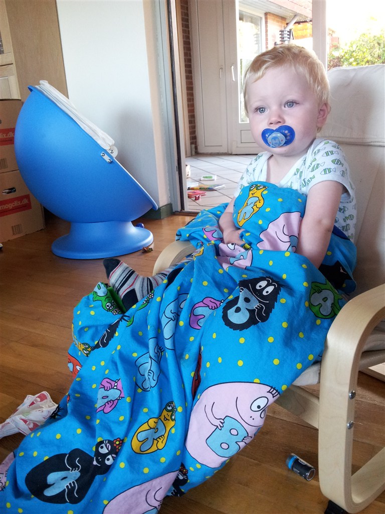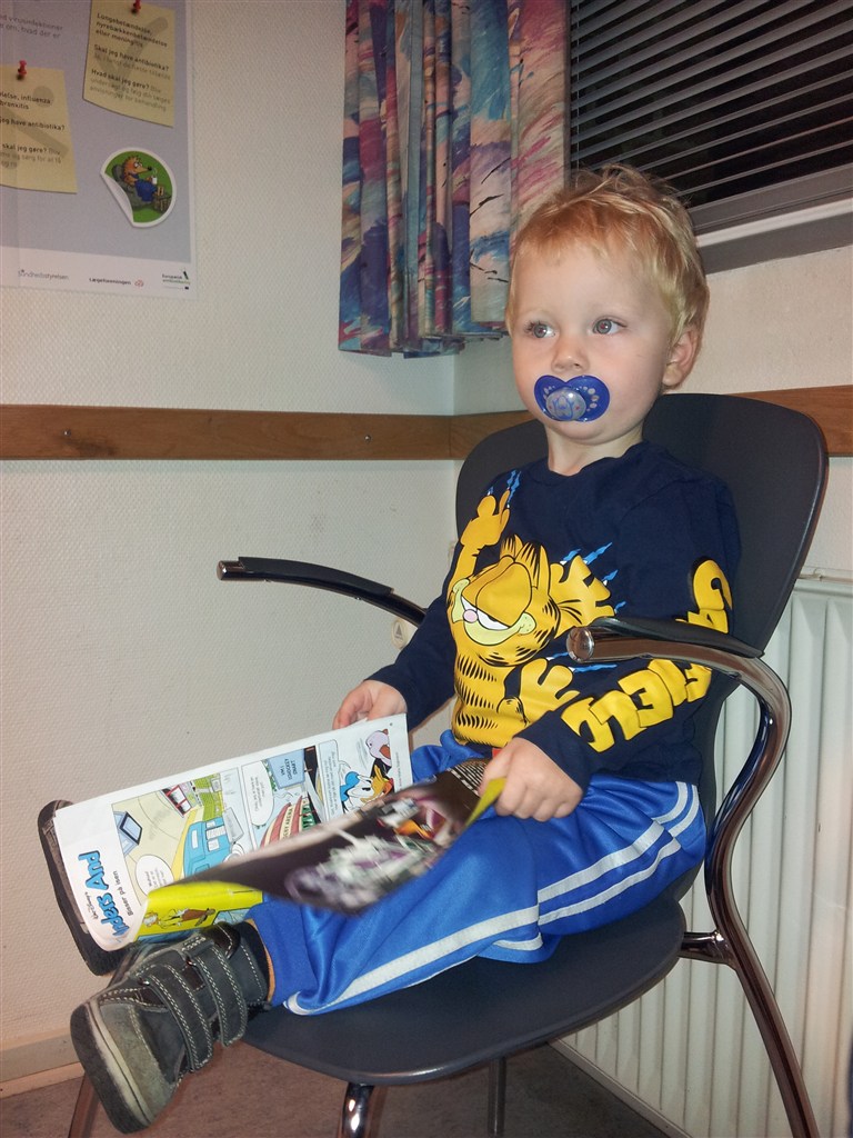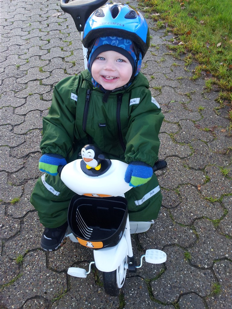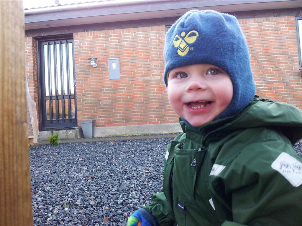 Janni. skriver: Synes det er på tide med lidt friske billeder af den unge herre. Her går det over alt forventning. Han er en total charmetrold som ved hvordan han skal snøre alle omkring sig. Og får man ikke lige sin vilje, så prøver han at ligge sig ned på gulvet og spille sur på alle tænkelige måder. Når det så heller ikke virker, så går han på sit værelse og skælder ud, kommer tilbage efter få minutter og har glemt alt om det, der nu ikke liige lykkedes. Han er også rigtig god til at rydde op efter sig selv når vi har spist aftensmad. Han stiller tallerken på køkkenbordet, men står der er noget i vejen, så ryger tallerkenen bare i skraldespanden. Og kan han se sit snit til at tage min eller farmands tallerken med også, så gør han det, uanset om der er noget på den eller ej.