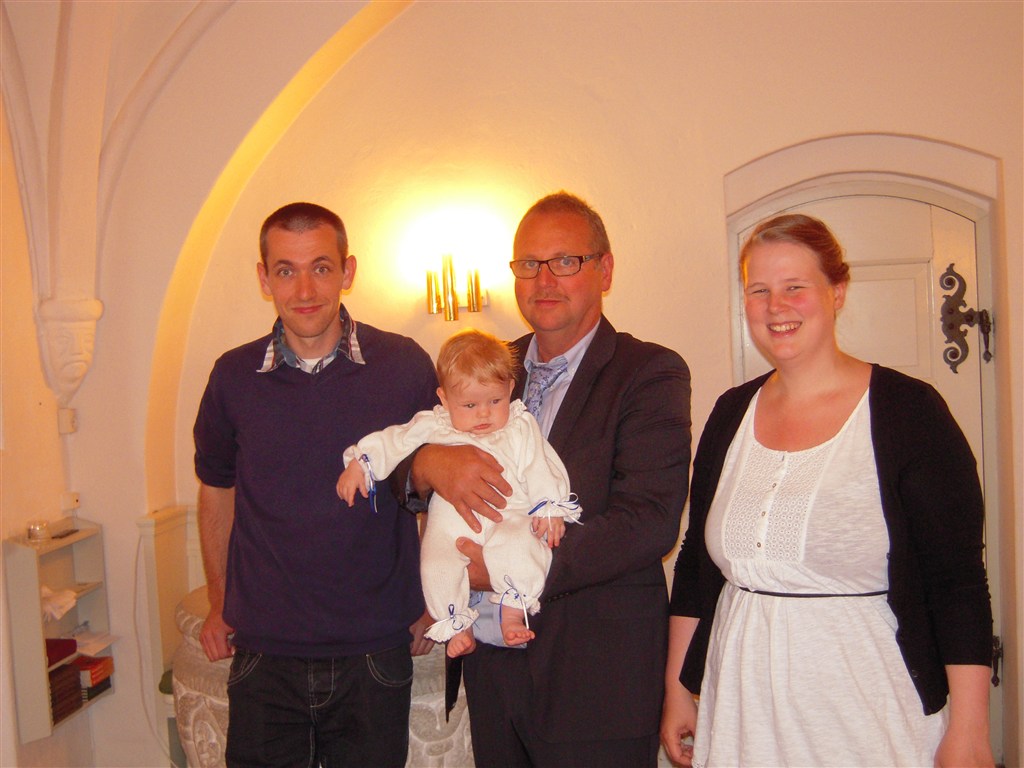 Min kæreste er ikke døbt, så han har ingen kjole eller andet.