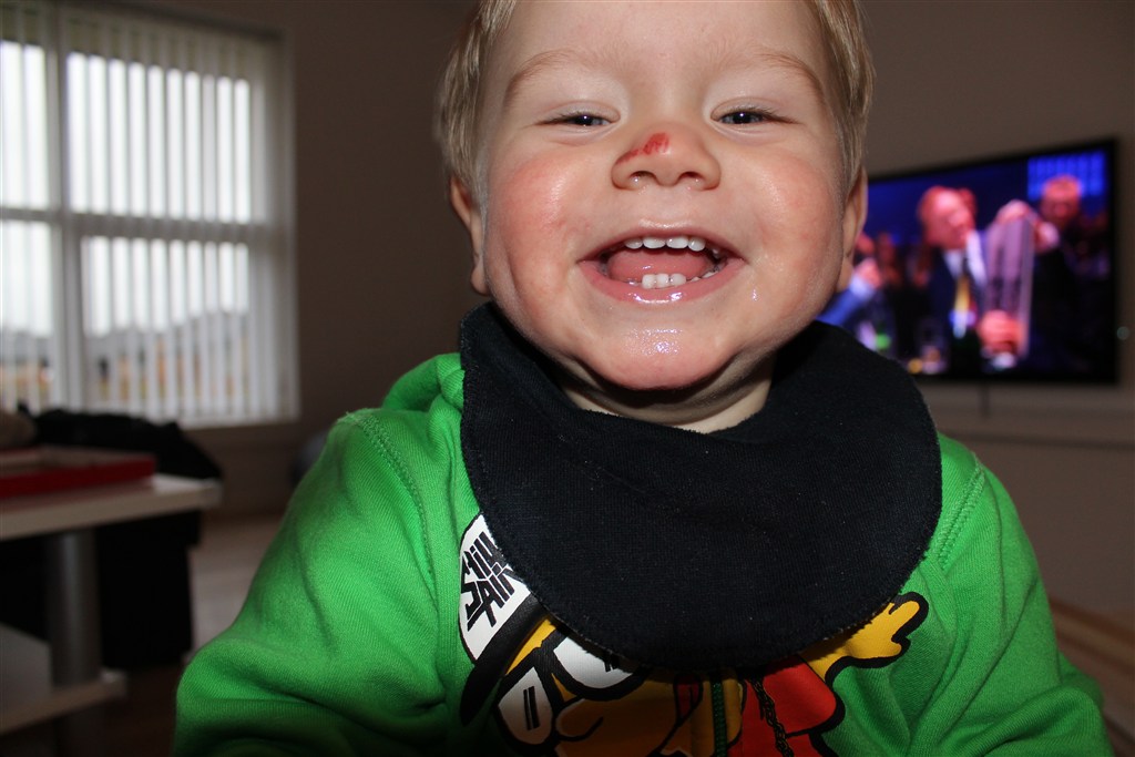 Lukas stortrives heldigvis. Og er nu 17-18 måneder. Han er en lille balademager med krudt i r...
