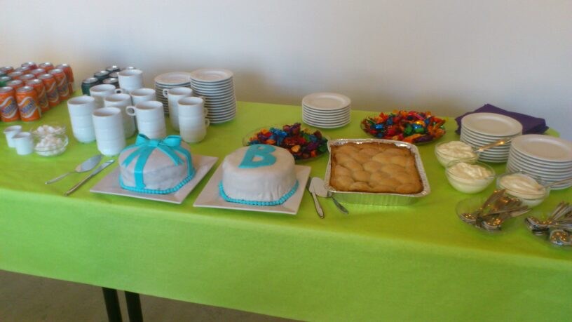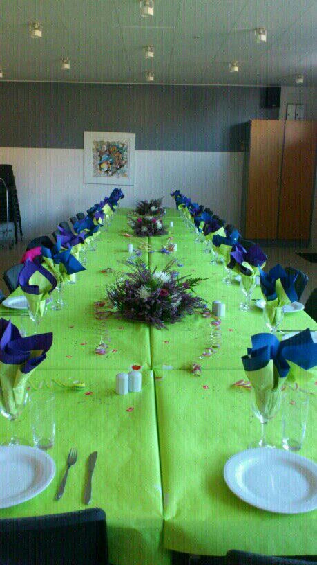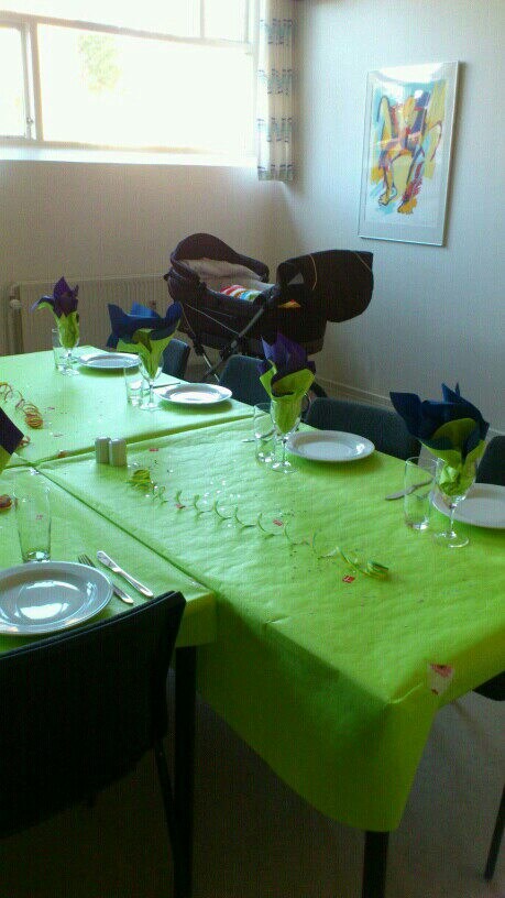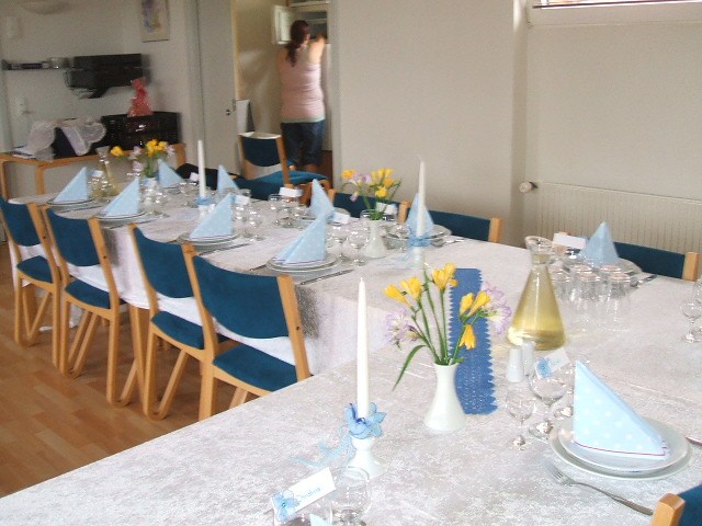 vi havde ikke så meget bordpynt, men jeg er fra en familie hvor vi til konfirmation får kniplede mellemlægs servietter, løbere (lange duge til midt på bordet), lysmanchetter (til rundt om lysene) og så valgte jeg selv at kniple små roser til bordkortene...