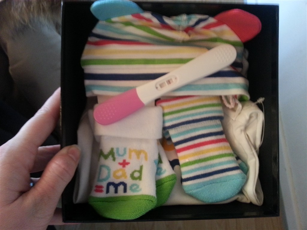 Nåh men var oppe og købe lidt tøj og pakkede så det ind med testen til min skønne kæreste. Og han var så glad. snart mere end mig, tror ikke helt jeg forstår det endnu!