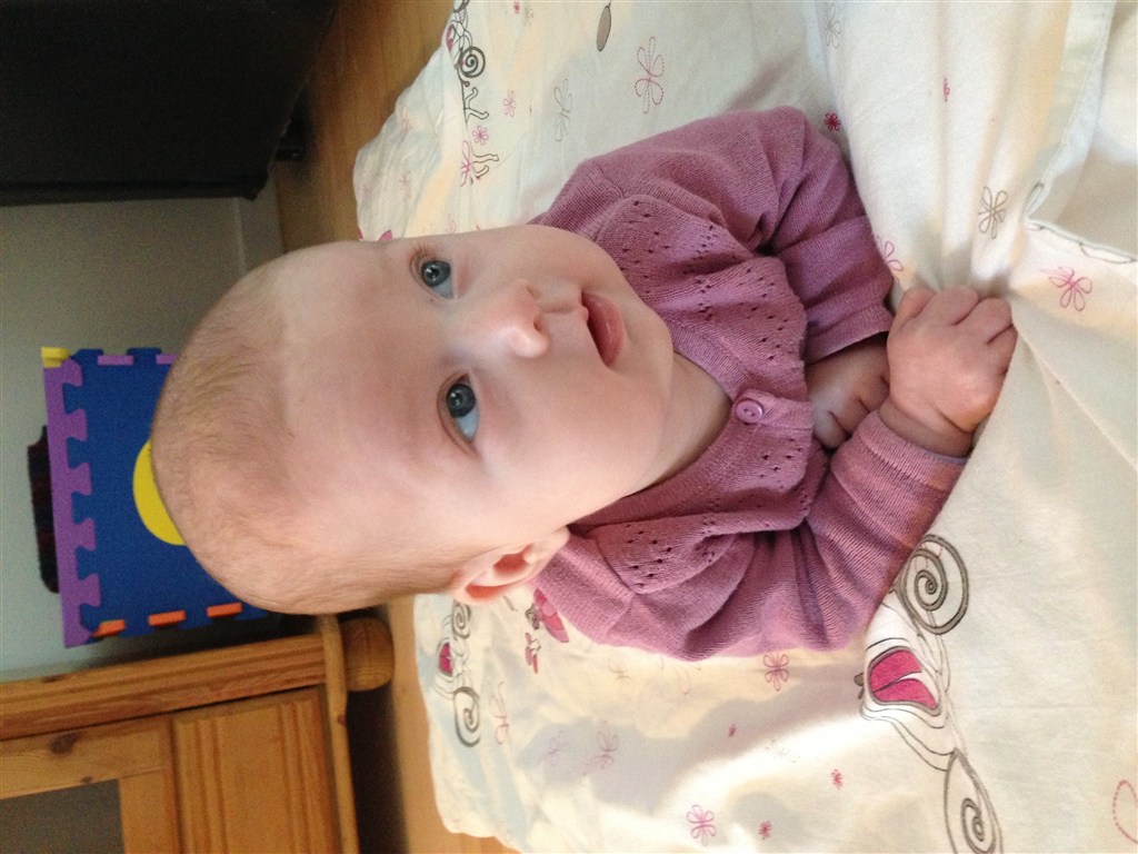Alberte blev 3 mdr den 11, tiden flyver afsted og den lille trold kan utrolig mange ting. Hun triller allerede hele vejen rundt, griner (med lyd) osv.