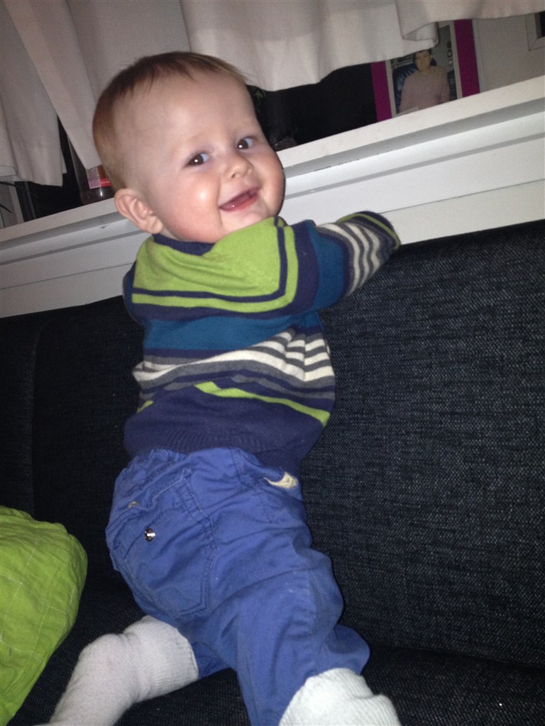 han er ca 73 cm og 10 kg så der er sket meget fra vi blev udskrevet på sygehuset med en baby på 2880g og 50 cm